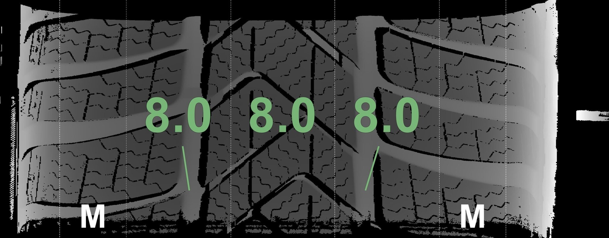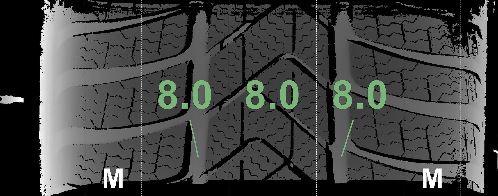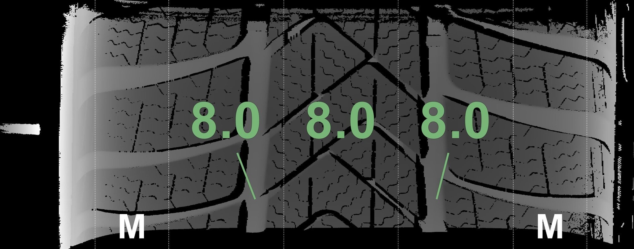 | Zustand | Profiltiefe | DOT | Vorderachse Links | Neu | 8,0 mm | 3725 |