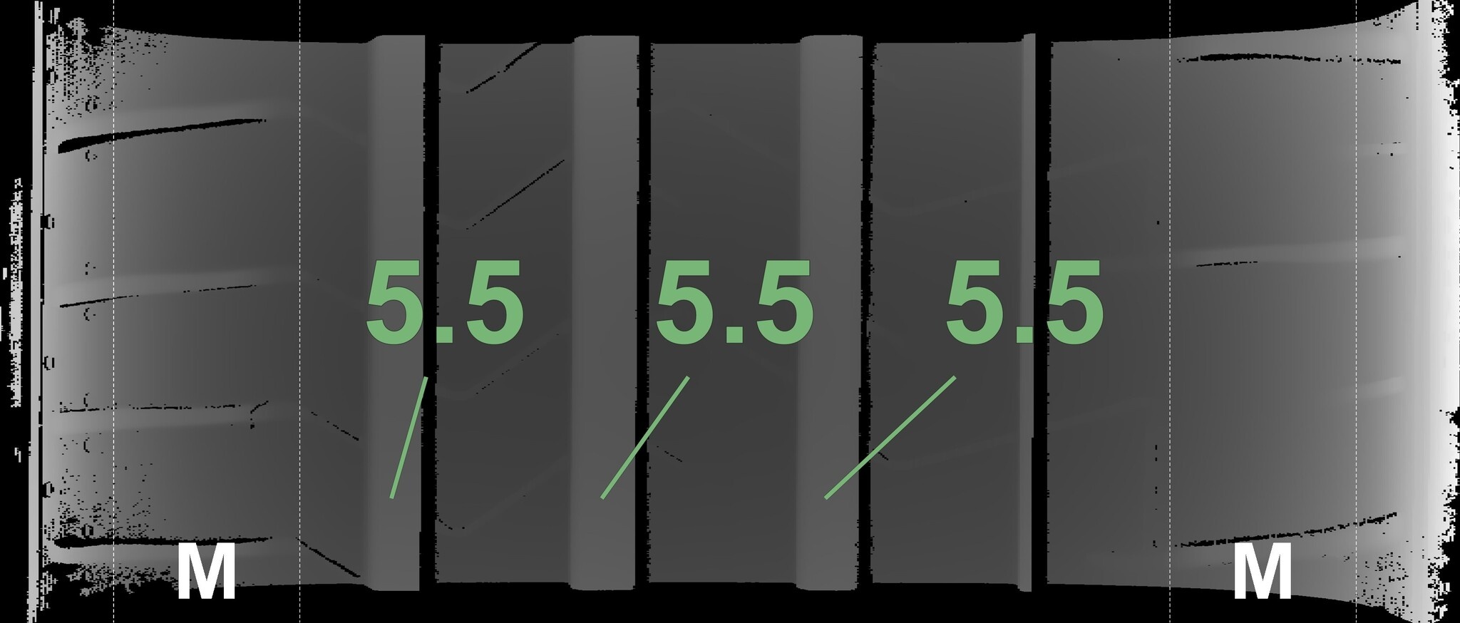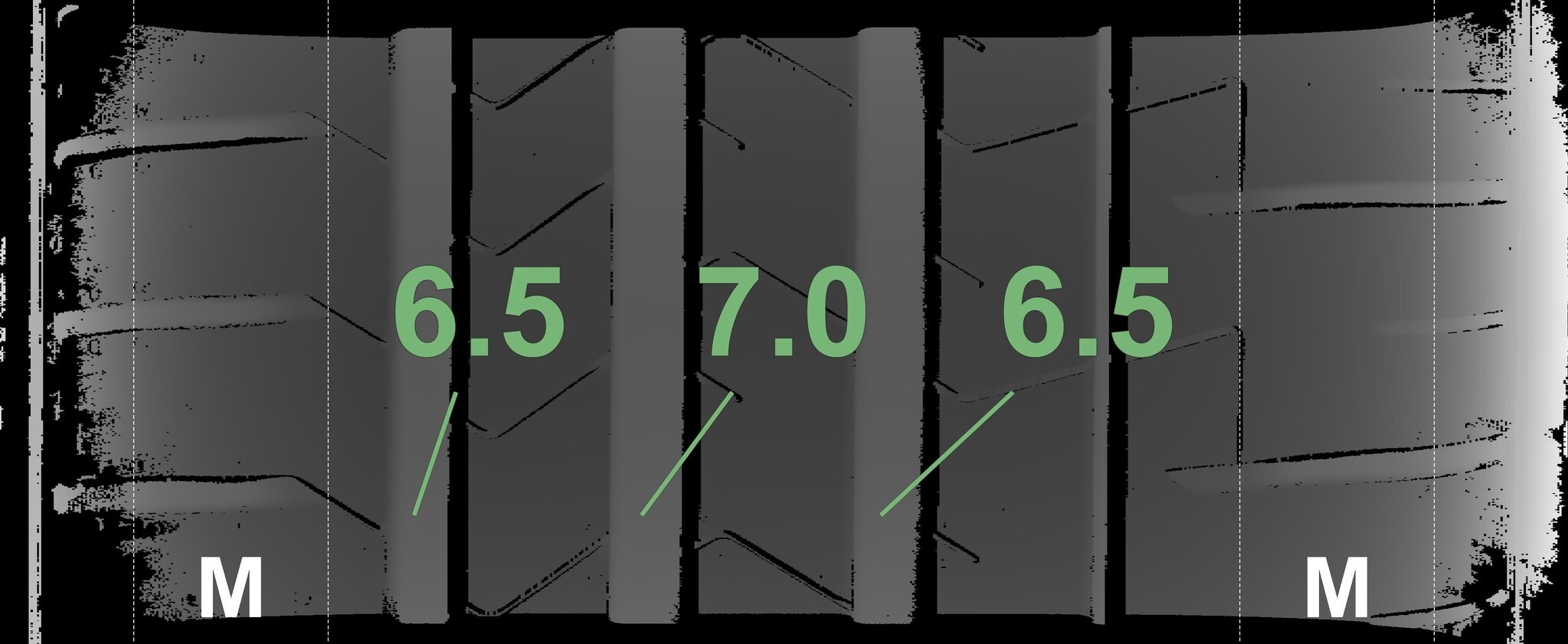 Die gemessenen Profiltiefen und Details zu den Felgen sind oben abgebildet.
