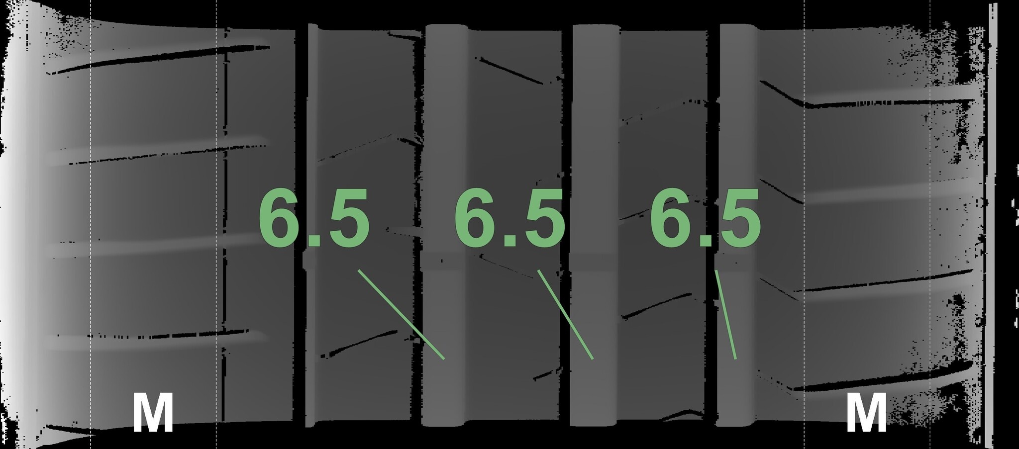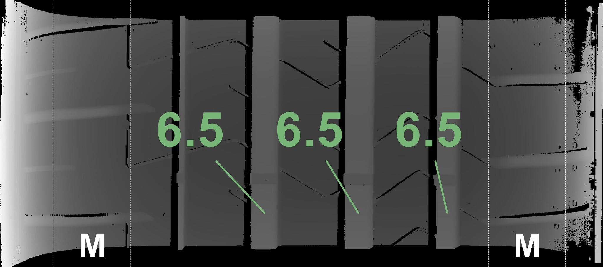 Zustand | Profiltiefe | DOT | Hinterachse Rechts | Neu | 6,5 mm | 2525 |