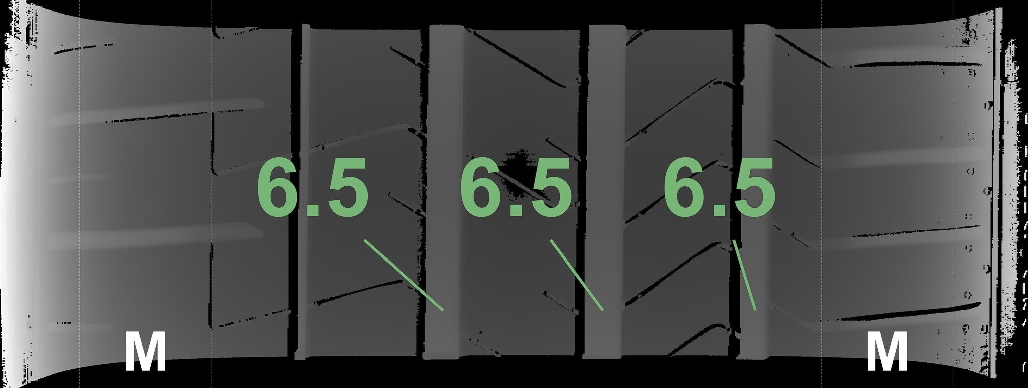 Zustand | Profiltiefe | DOT | Hinterachse Links | Demo-Noppen noch sichtbar | 6,5 mm | 3924 |