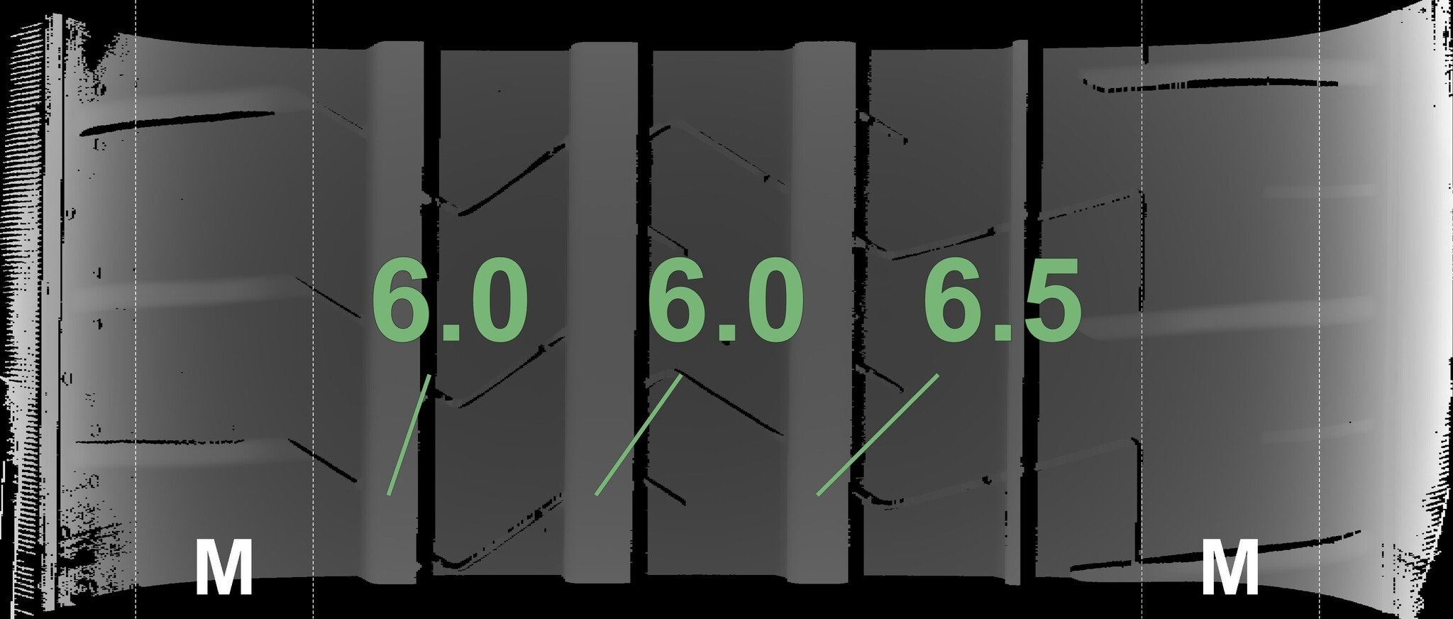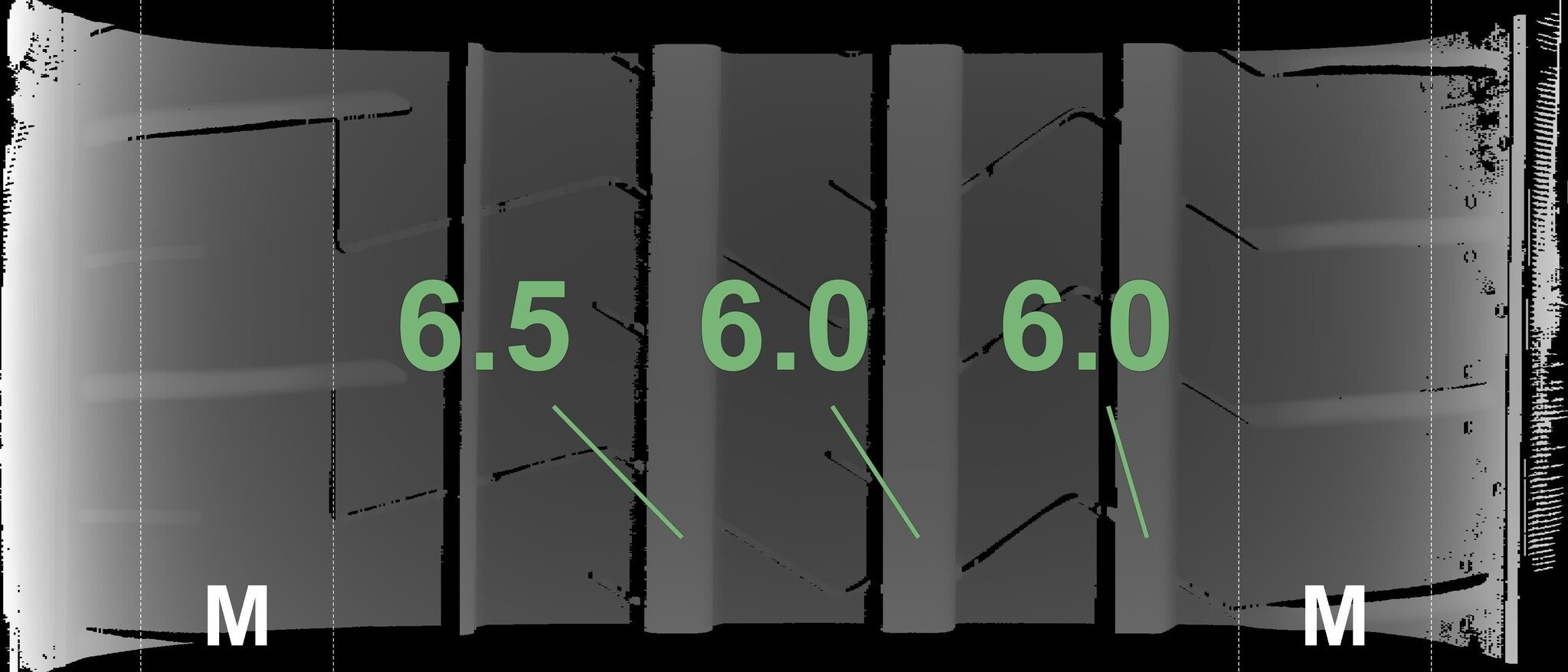 Die gemessenen Profiltiefen und Details zu den Felgen sind oben abgebildet.