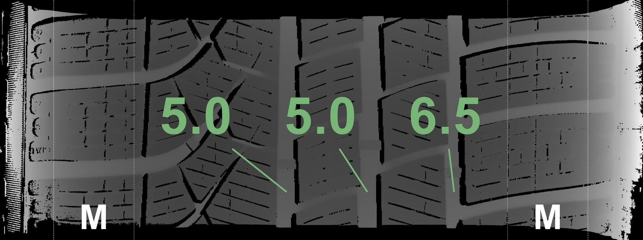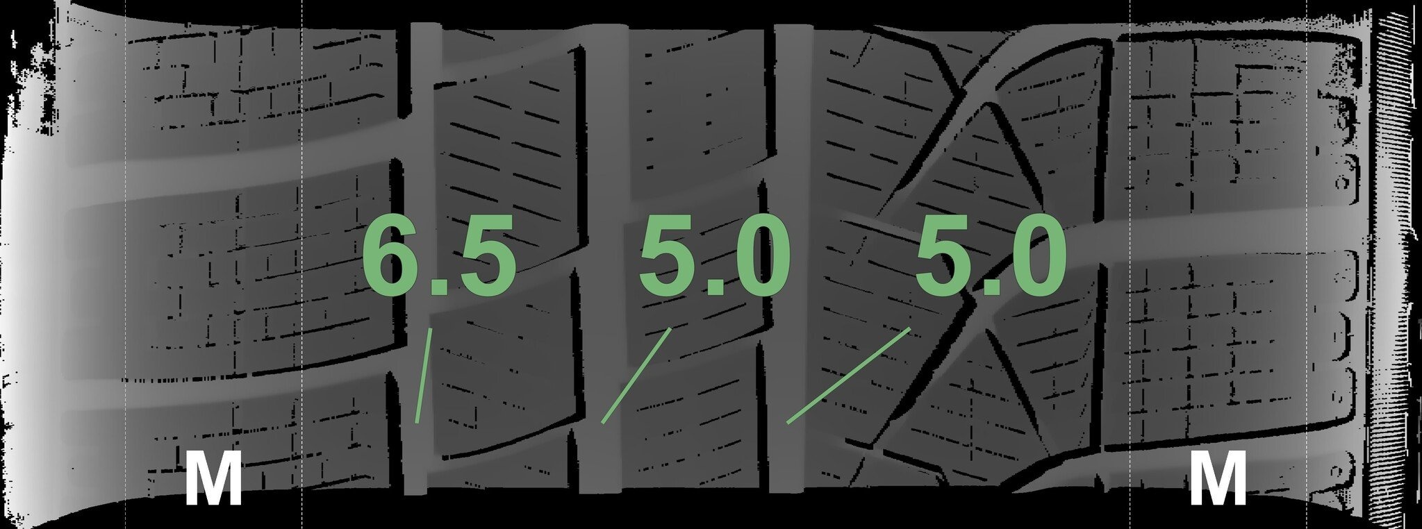 Die gemessenen Profiltiefen und Details zu den Felgen sind oben abgebildet.