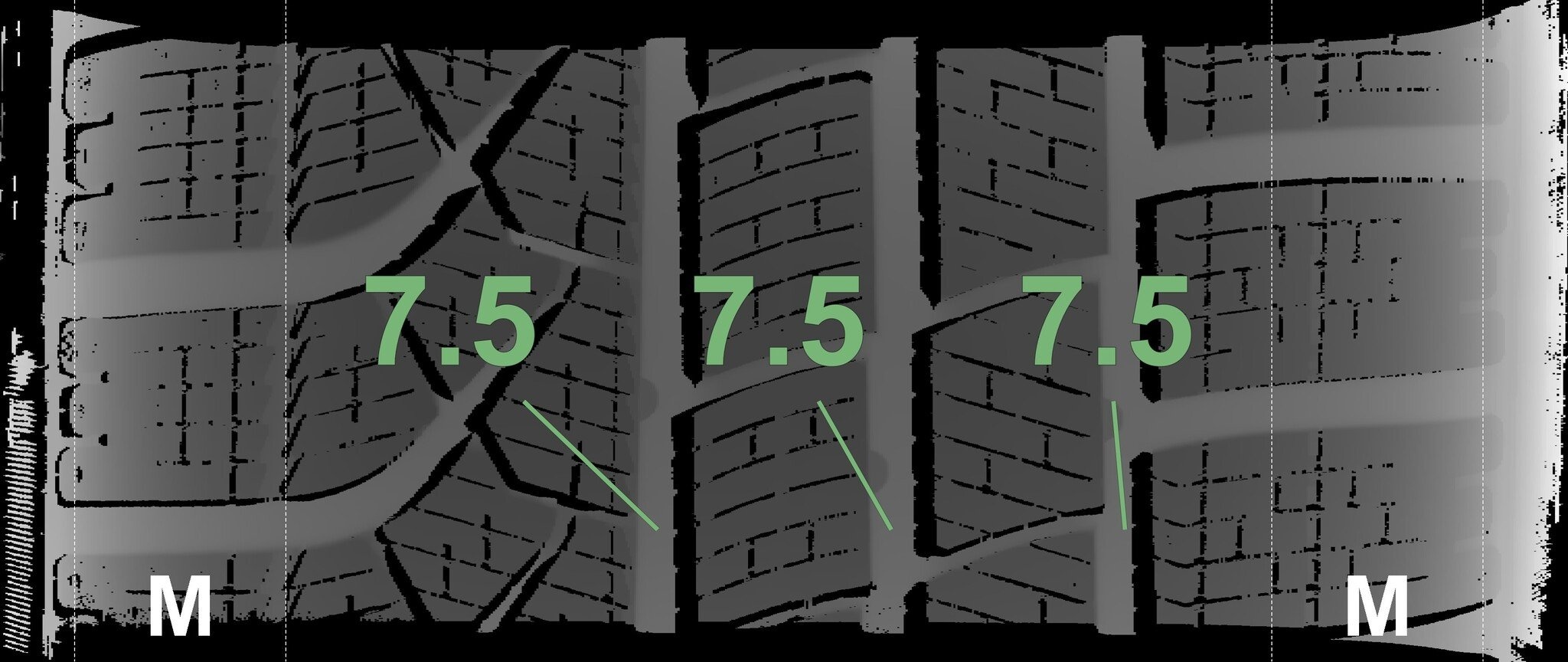 | Zustand | Profiltiefe | DOT | Vorderachse Links | Neu | 7,5 mm | 2025 |