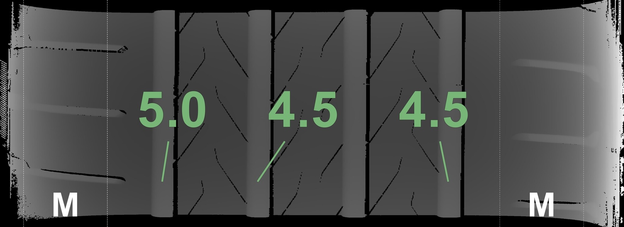 Die gemessenen Profiltiefen und Details zu den Felgen sind oben abgebildet.