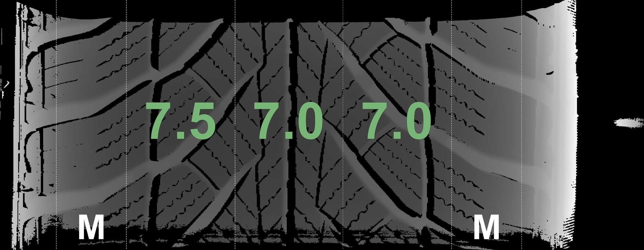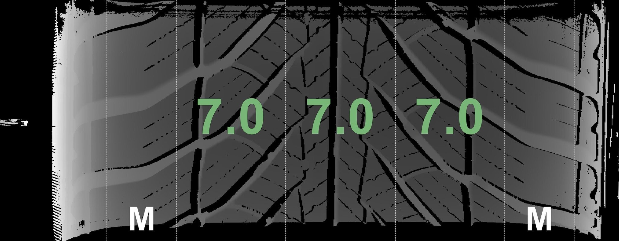 | Zustand | Profiltiefe | DOT | Vorderachse Links | Gebraucht | 7,0 mm | 4018 |