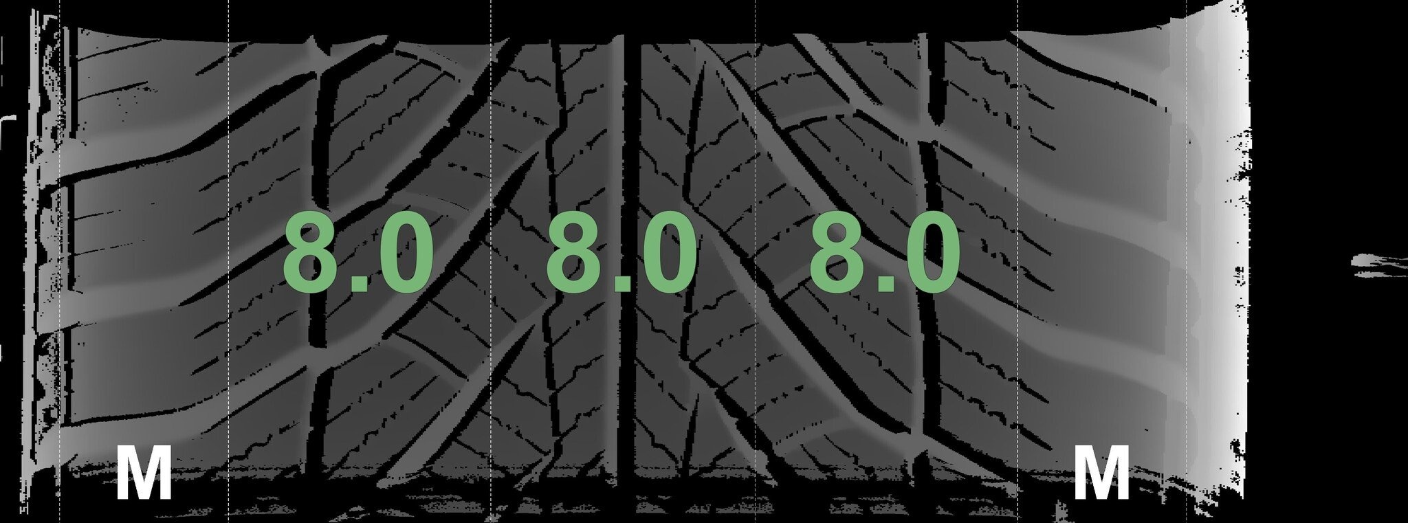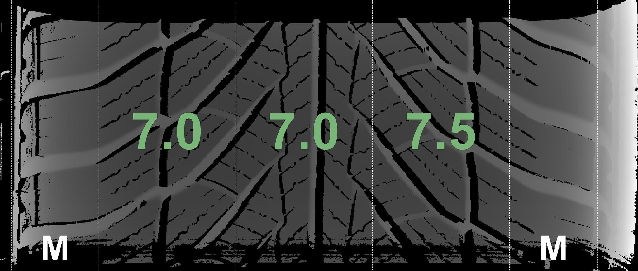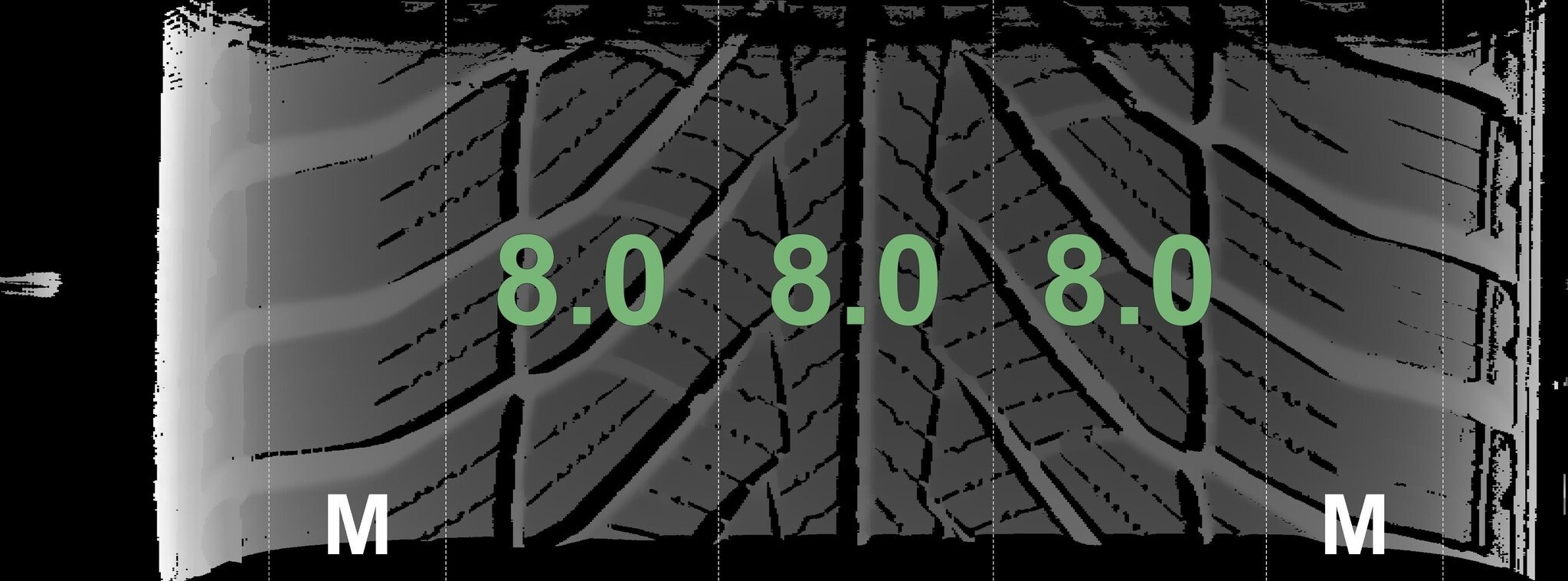 Die gemessenen Profiltiefen und die Details der Felgen sind oben angegeben.