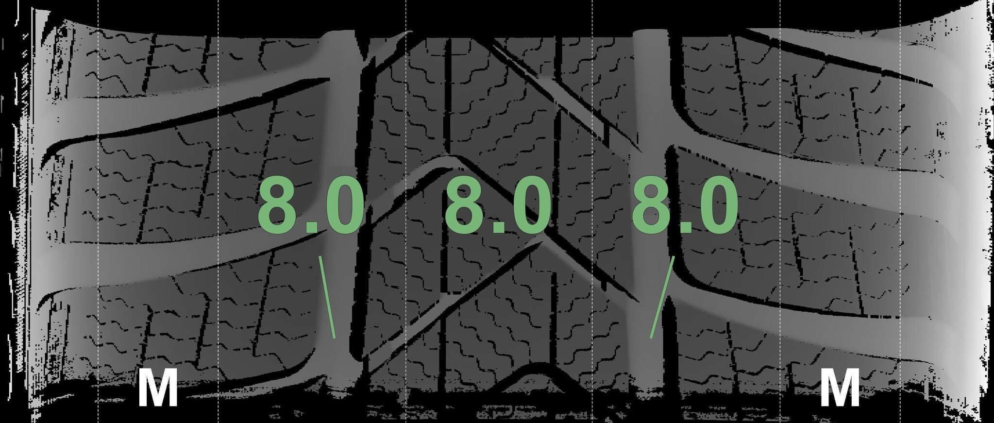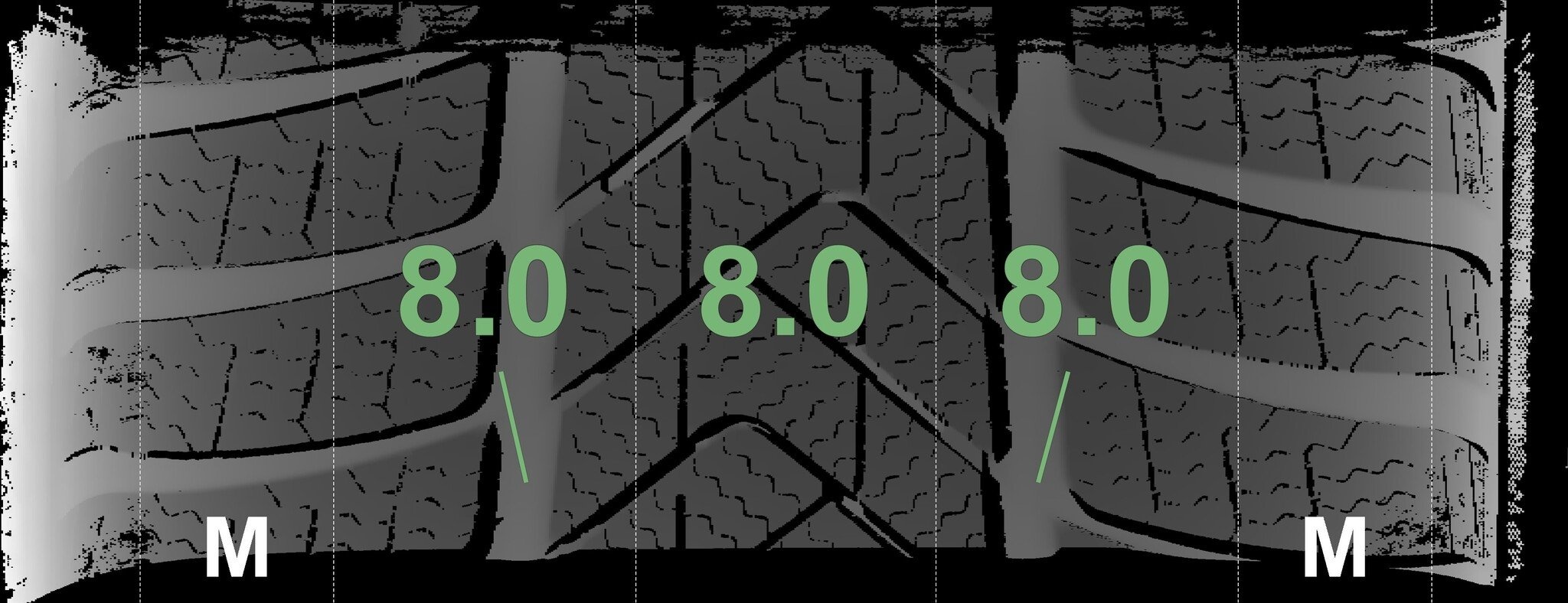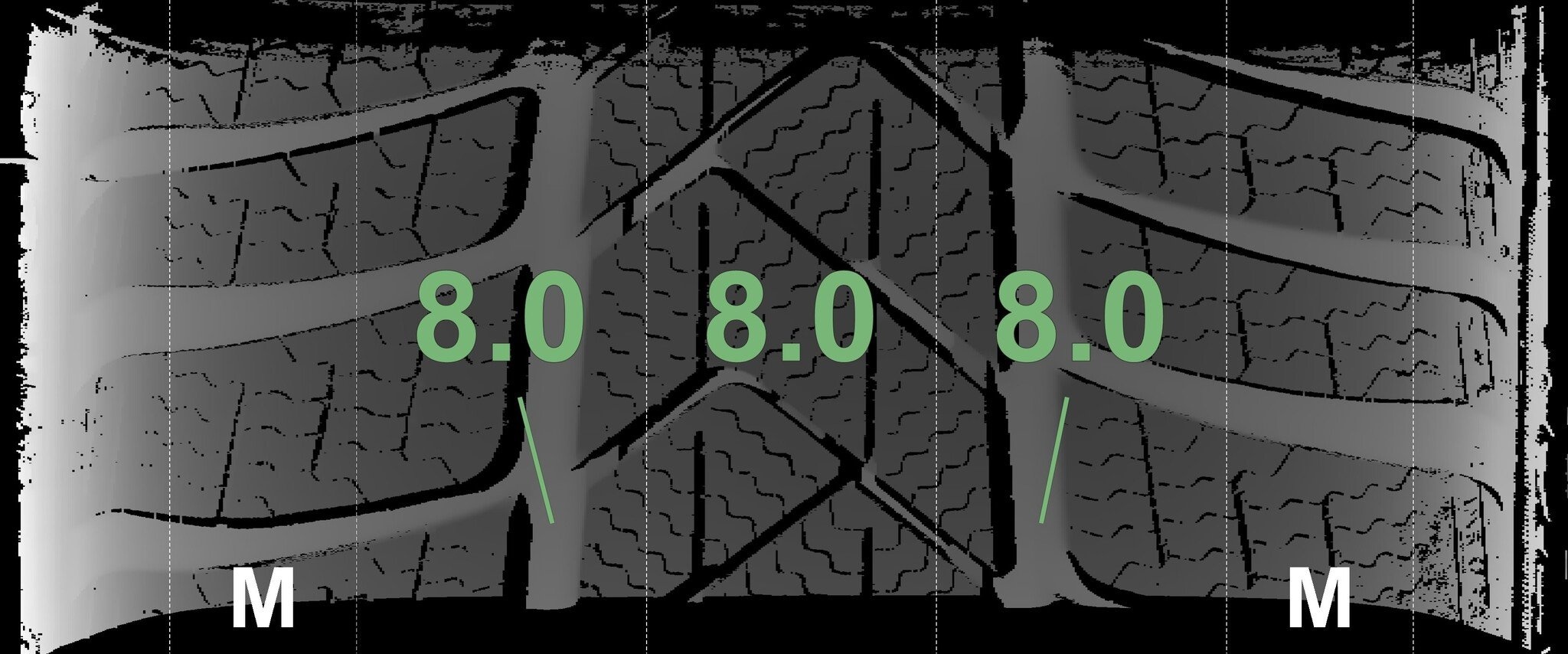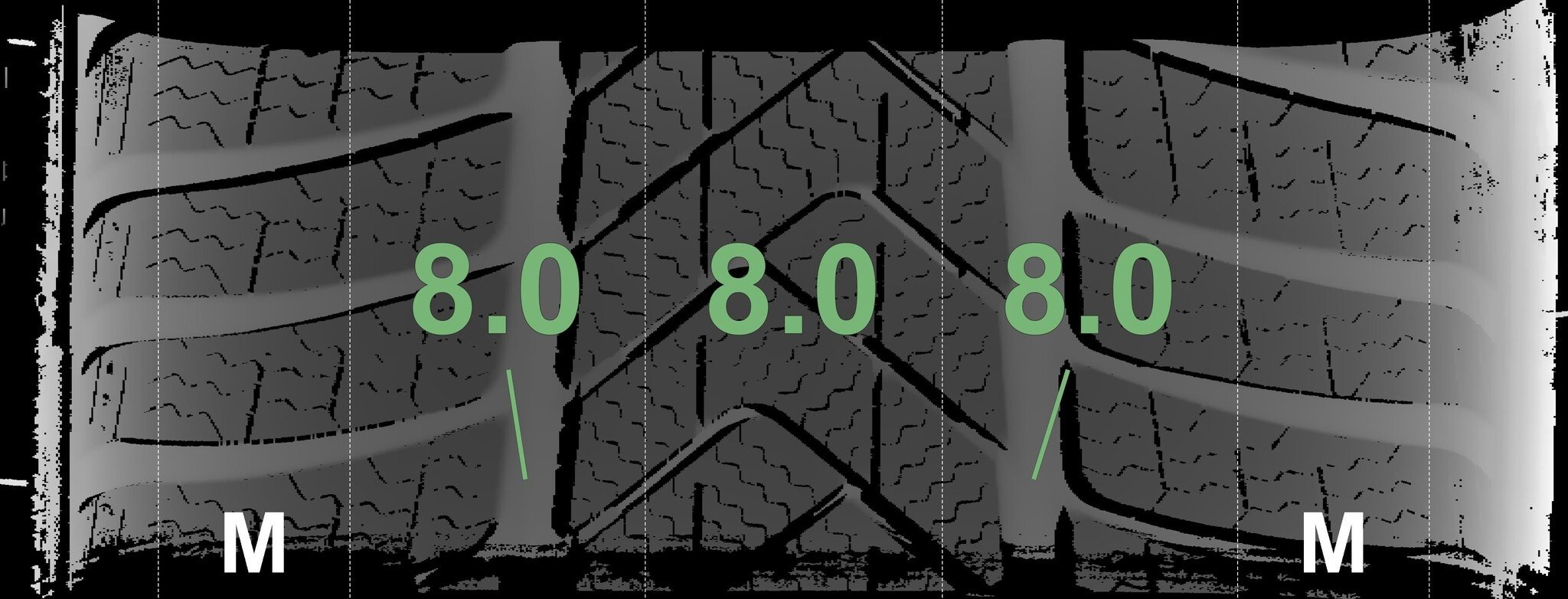 | Zustand | Profiltiefe | DOT | Vorderachse Links | Neu | 8,0 mm | 2225 |