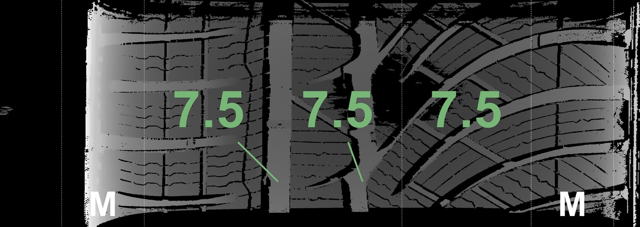 | Zustand | Profiltiefe | DOT | Hinterachse Links | Neu | 7,5 mm | 2425 |