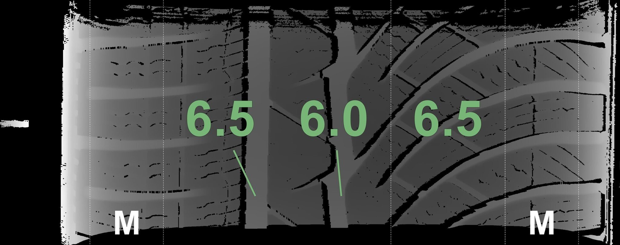 Die gemessenen Profiltiefen und die Details der Felgen sind oben angegeben.
