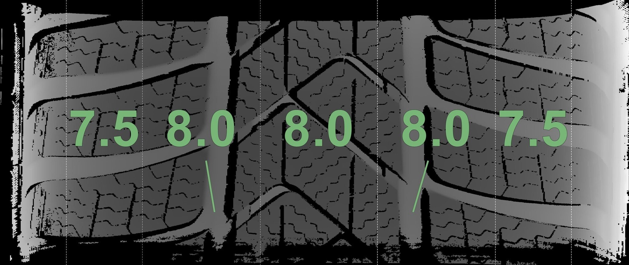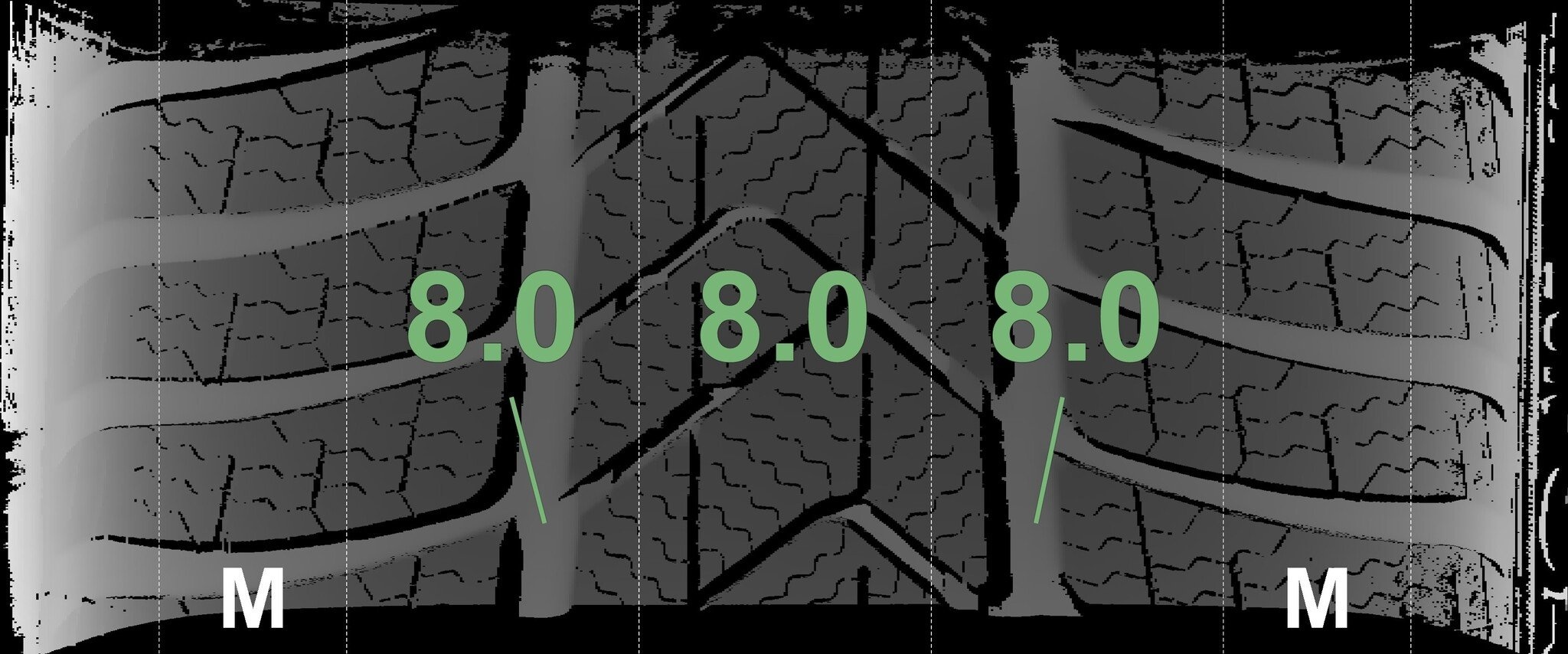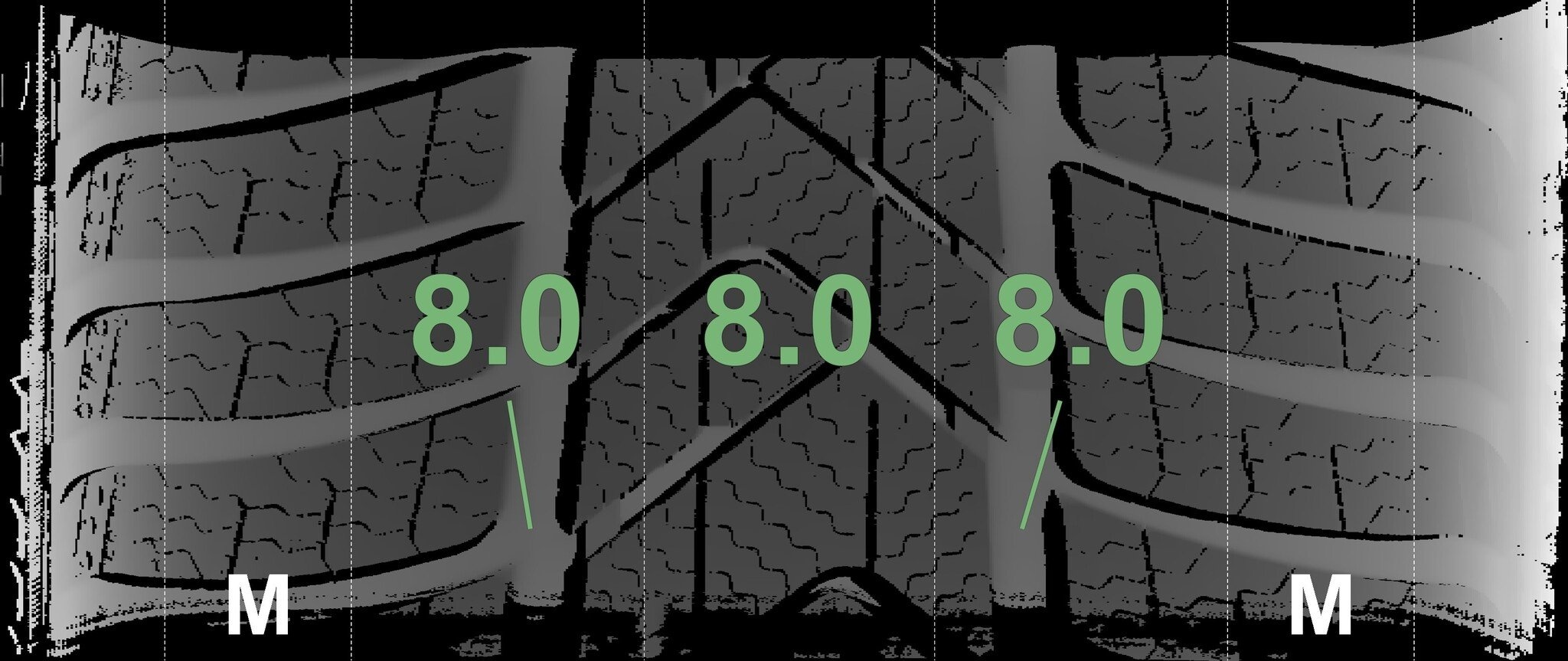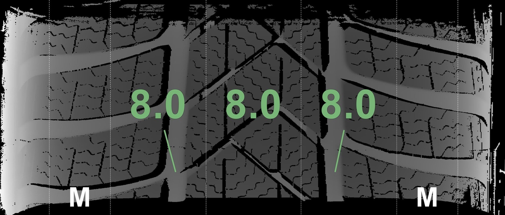 | Zustand | Profiltiefe | DOT | Vorderachse Links | Neu | 8,0 mm | 3525 |
