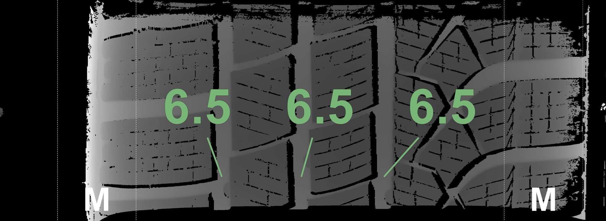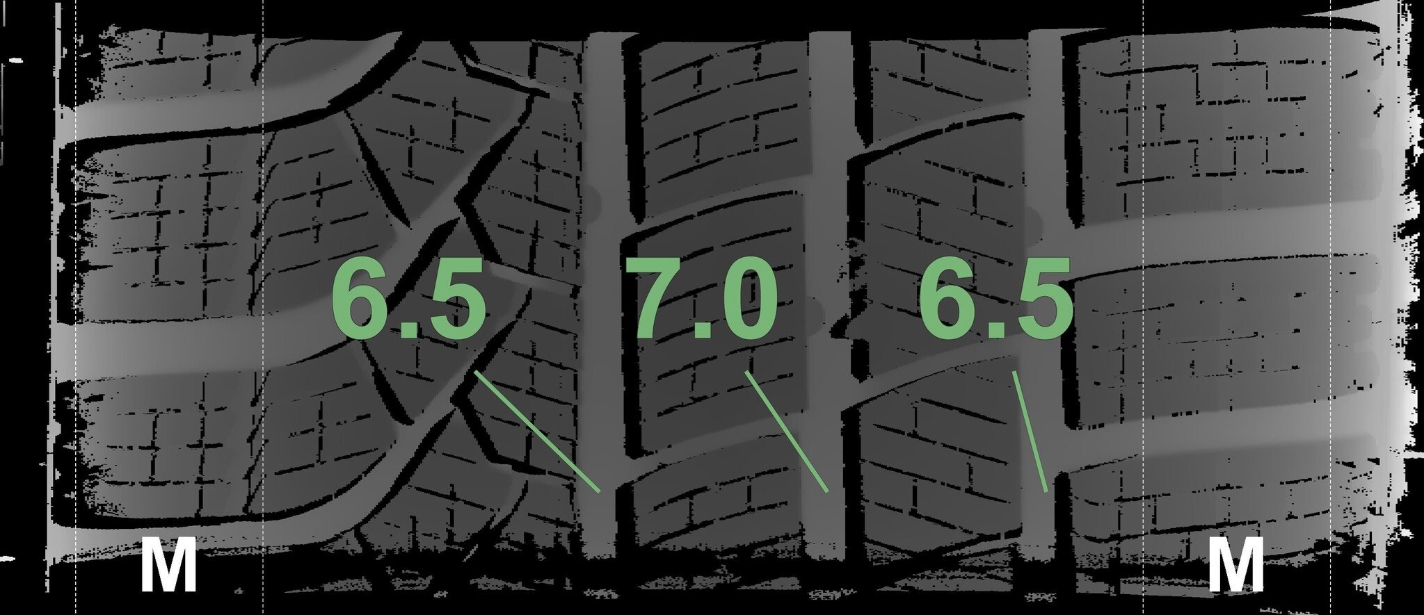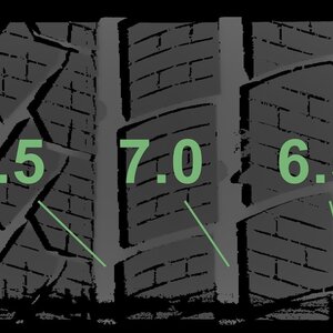 Die gemessenen Profiltiefen und die Details der Felgen sind oben dargestellt.