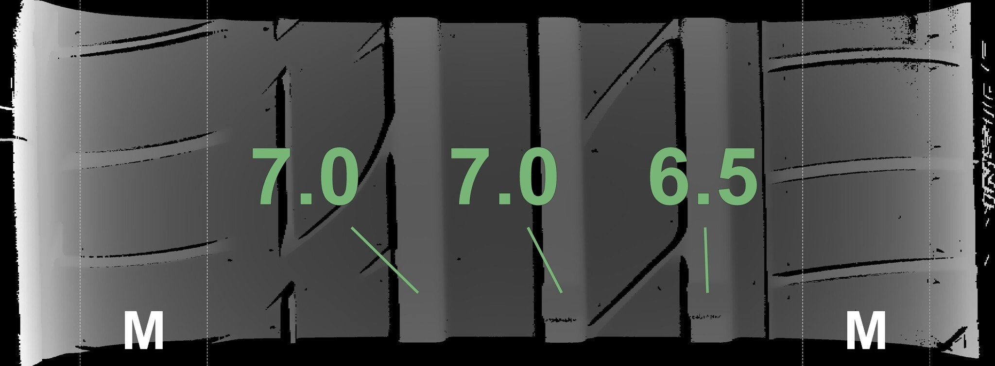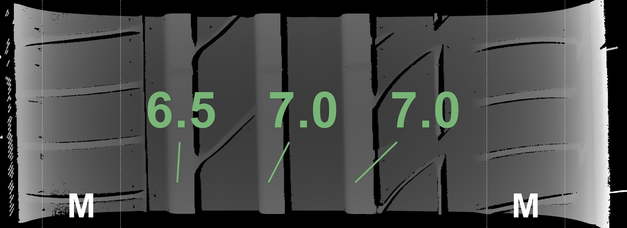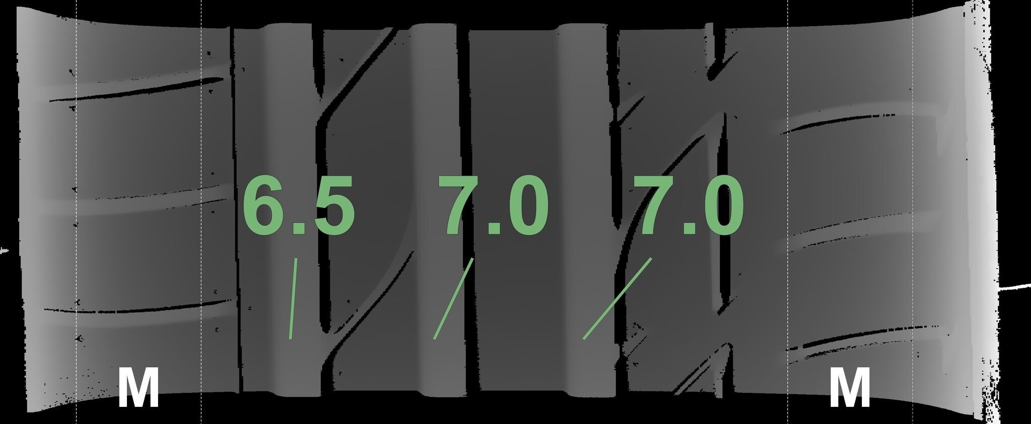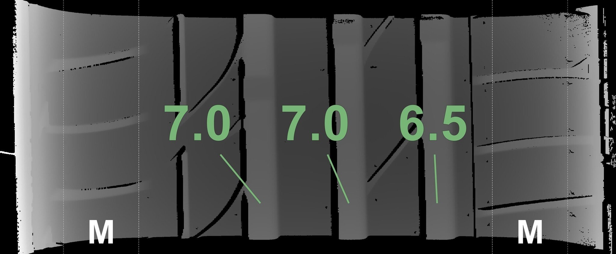 Die gemessenen Profiltiefen und Details zu den Felgen sind oben abgebildet.