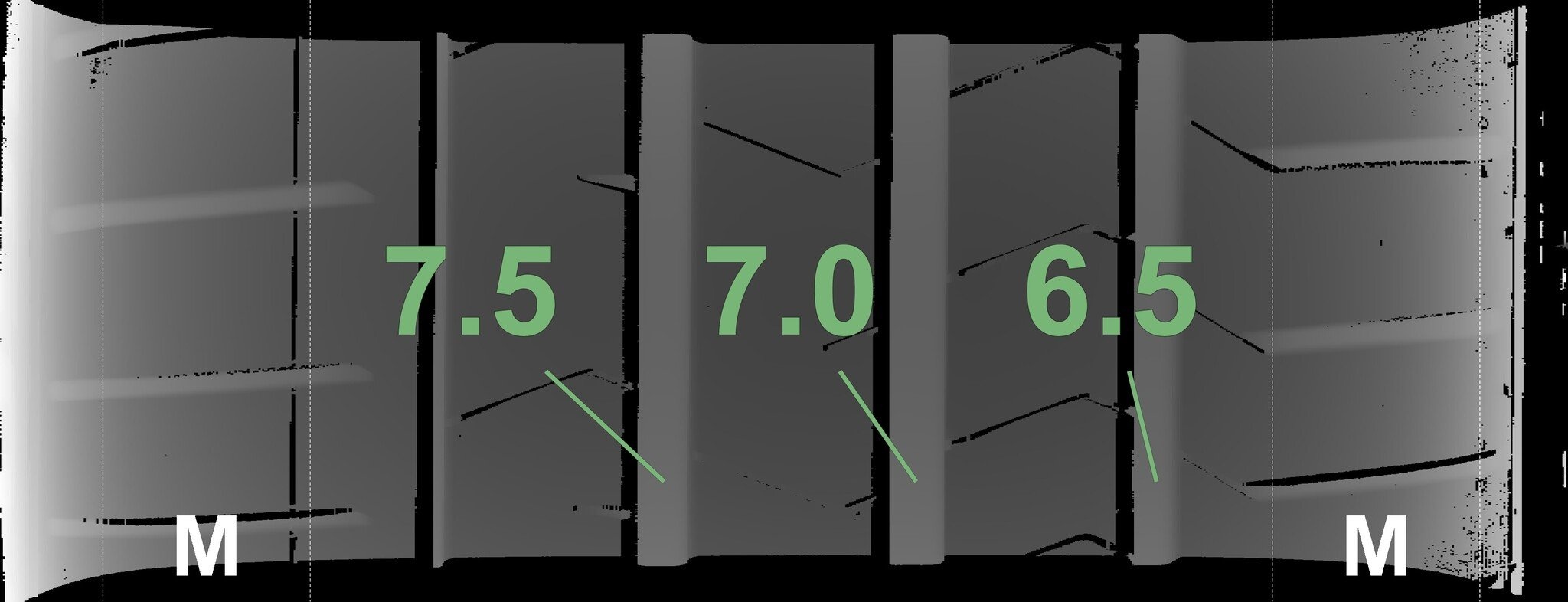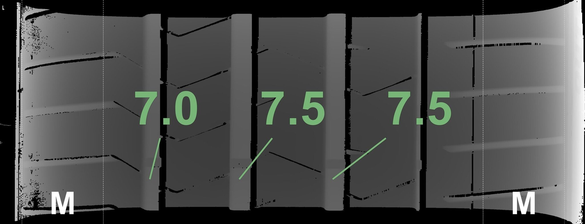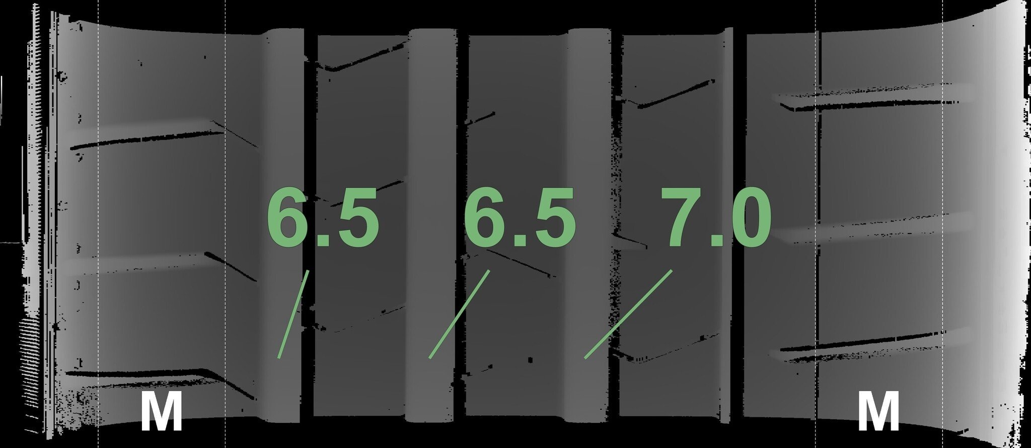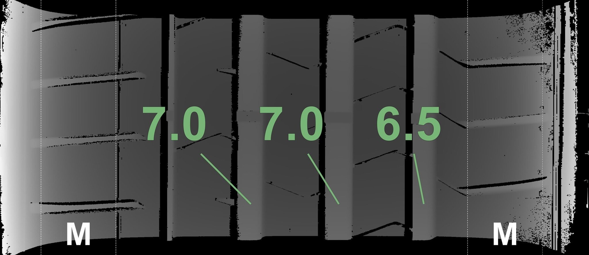 Die gemessenen Profiltiefen und Details zu den Felgen sind oben abgebildet.
