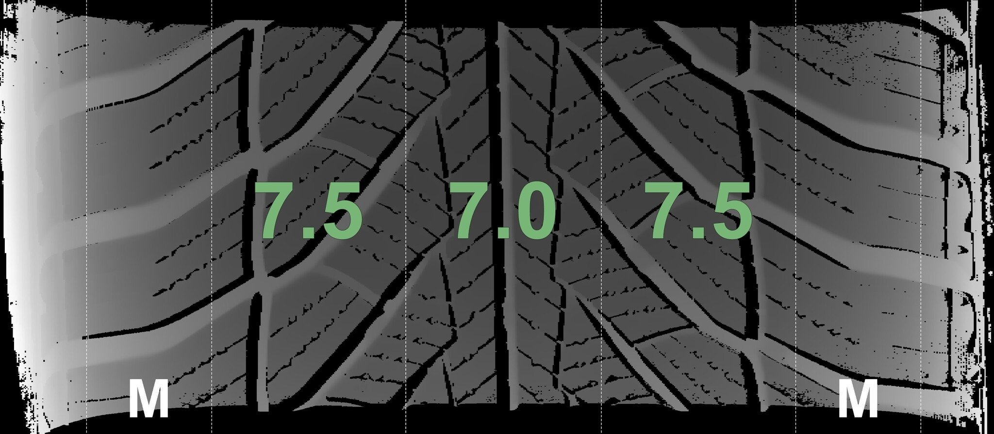 Die gemessenen Profiltiefen und Details zu den Felgen sind oben abgebildet.