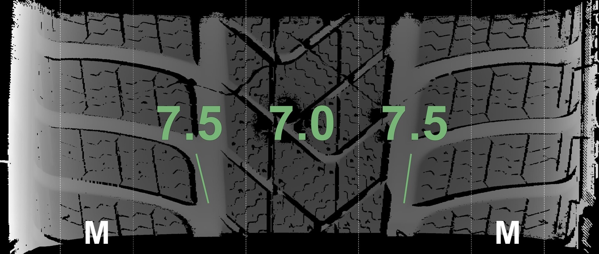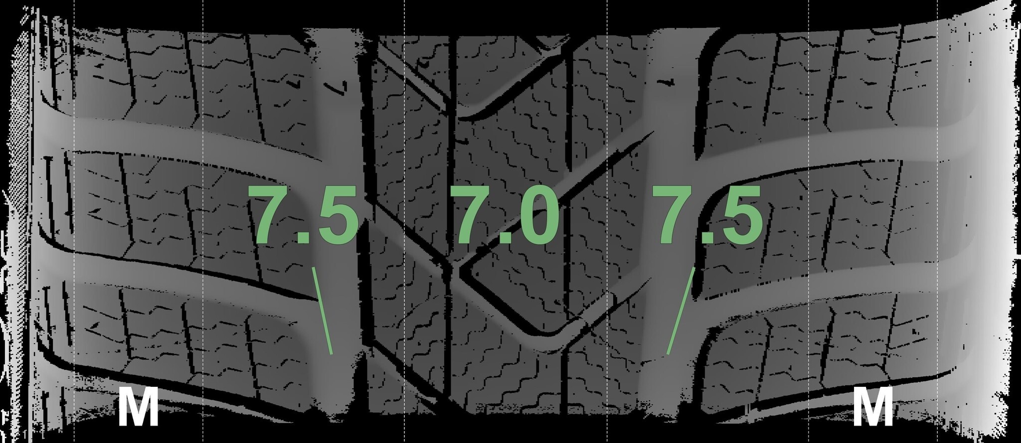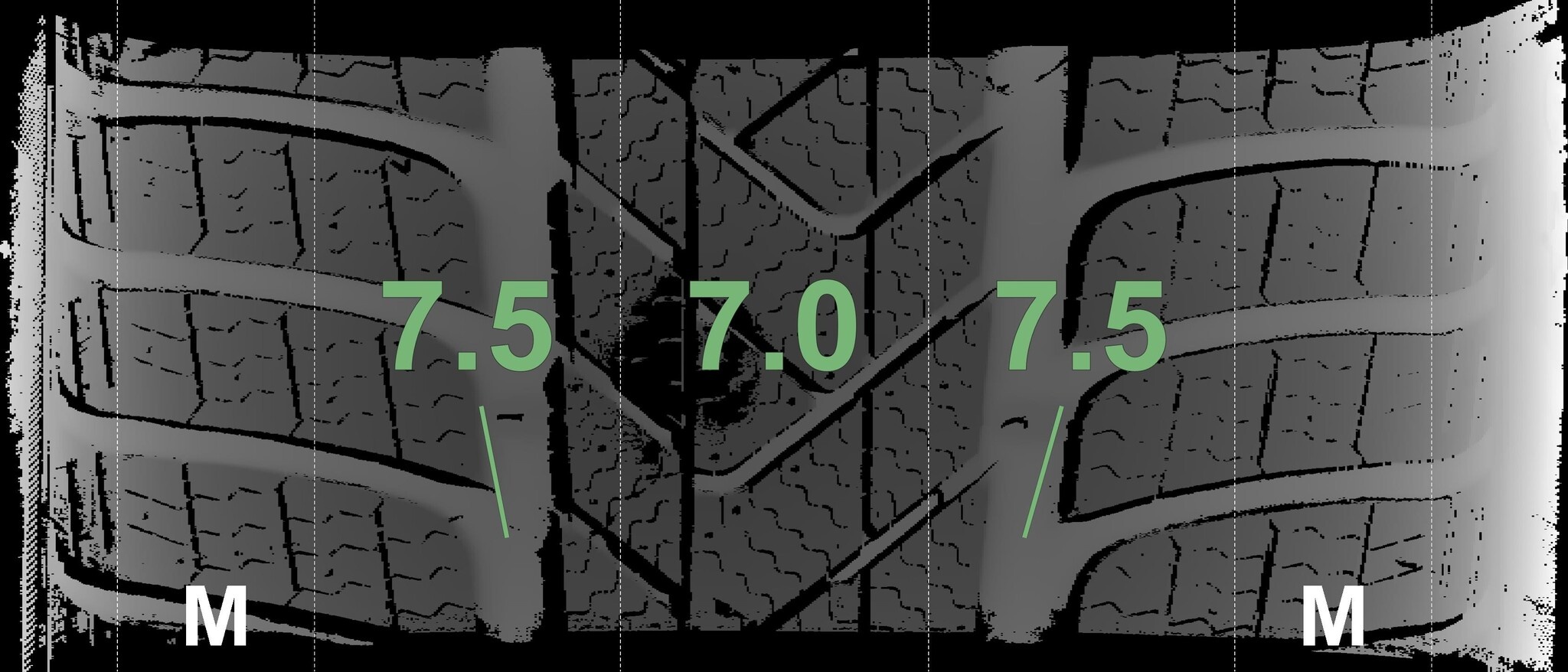 Die gemessenen Profiltiefen und Details zu den Felgen sind oben abgebildet.