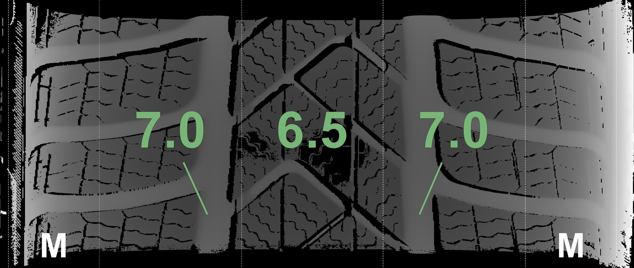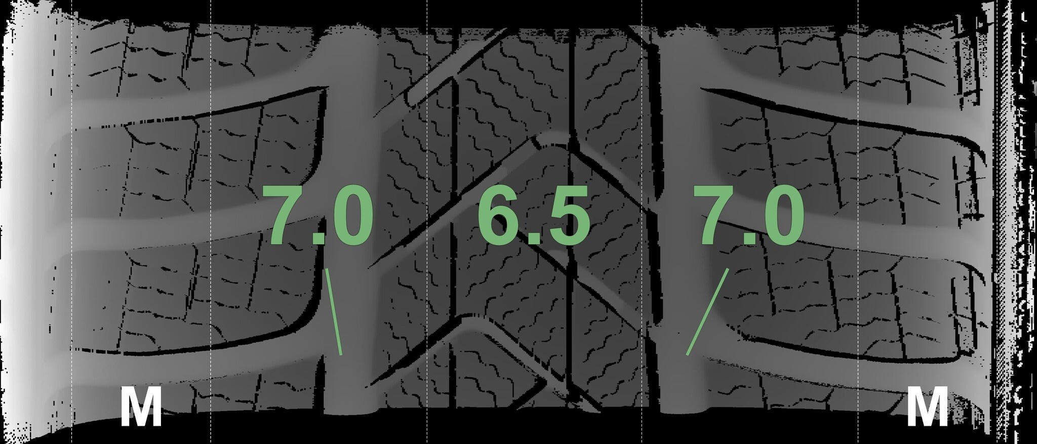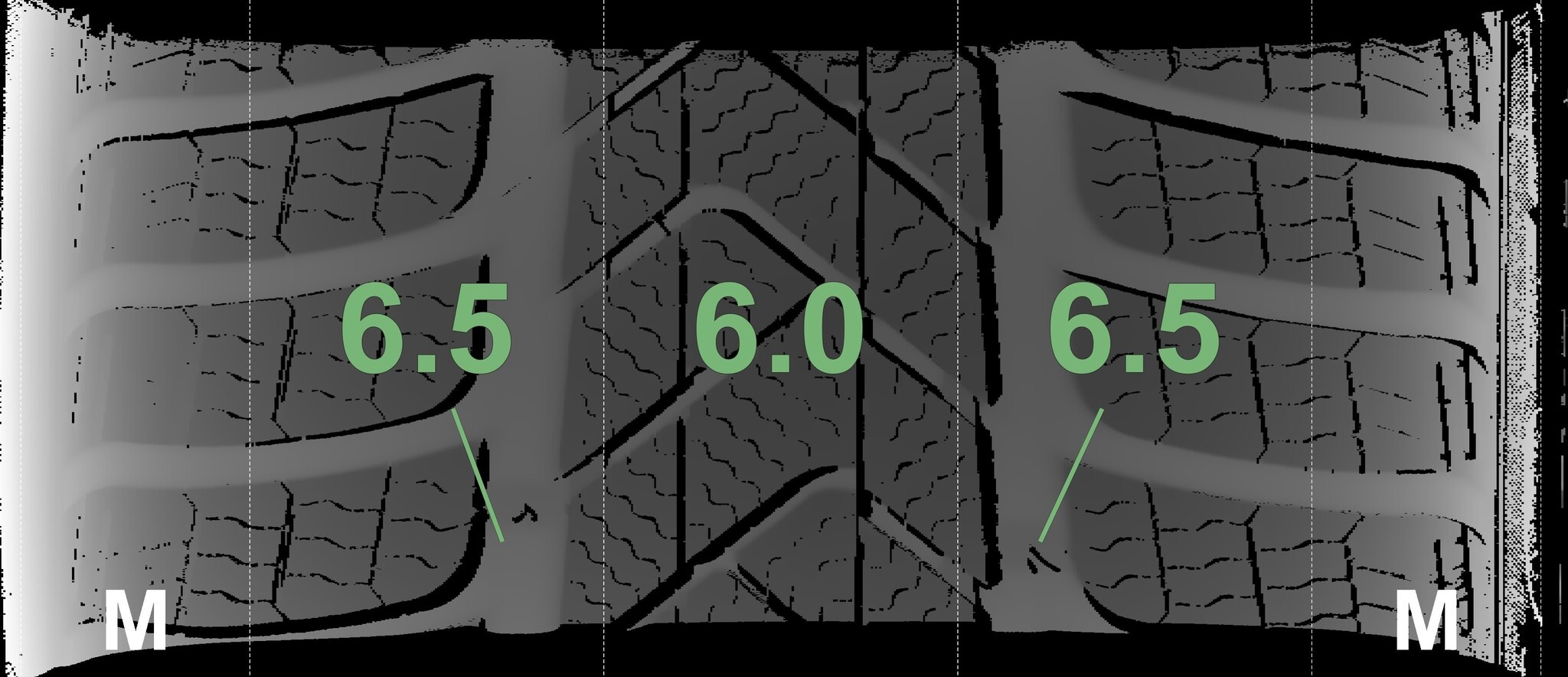 Die gemessenen Profiltiefen und Details zu den Felgen sind oben abgebildet.