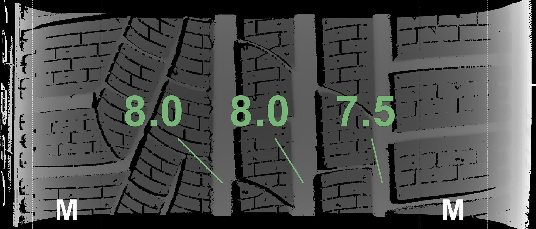 Die gemessenen Profiltiefen und Details zu den Felgen sind oben abgebildet.