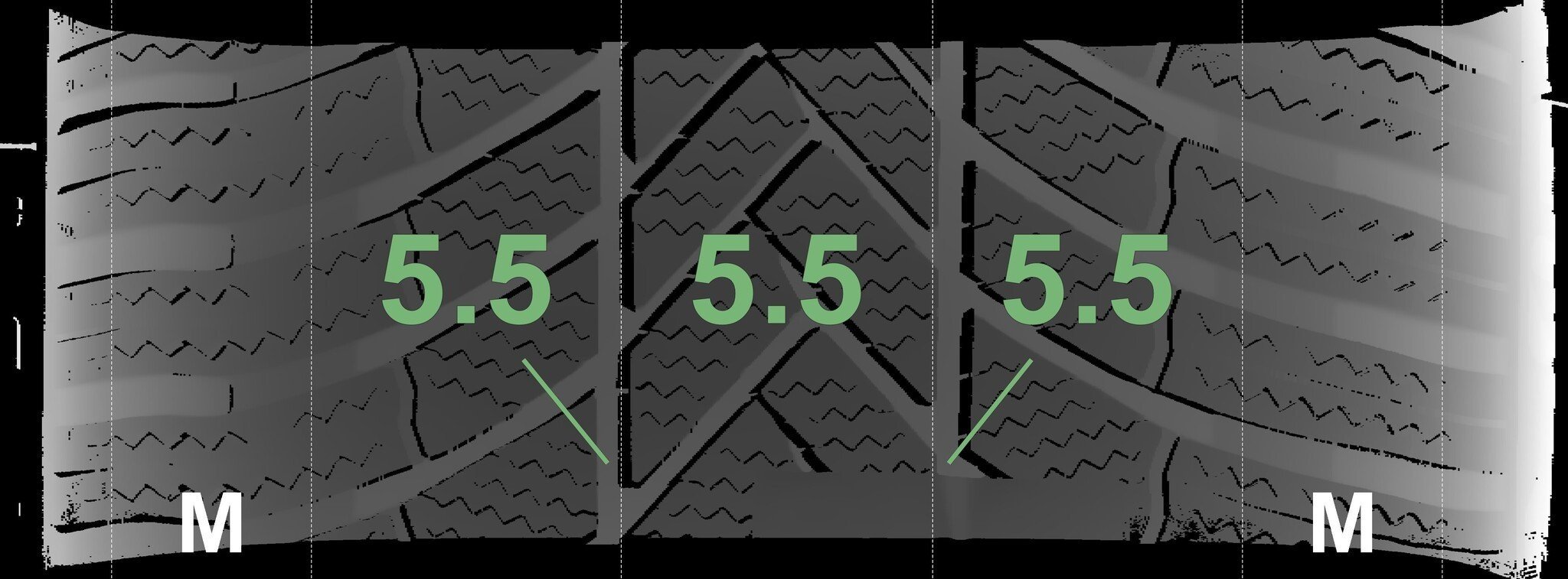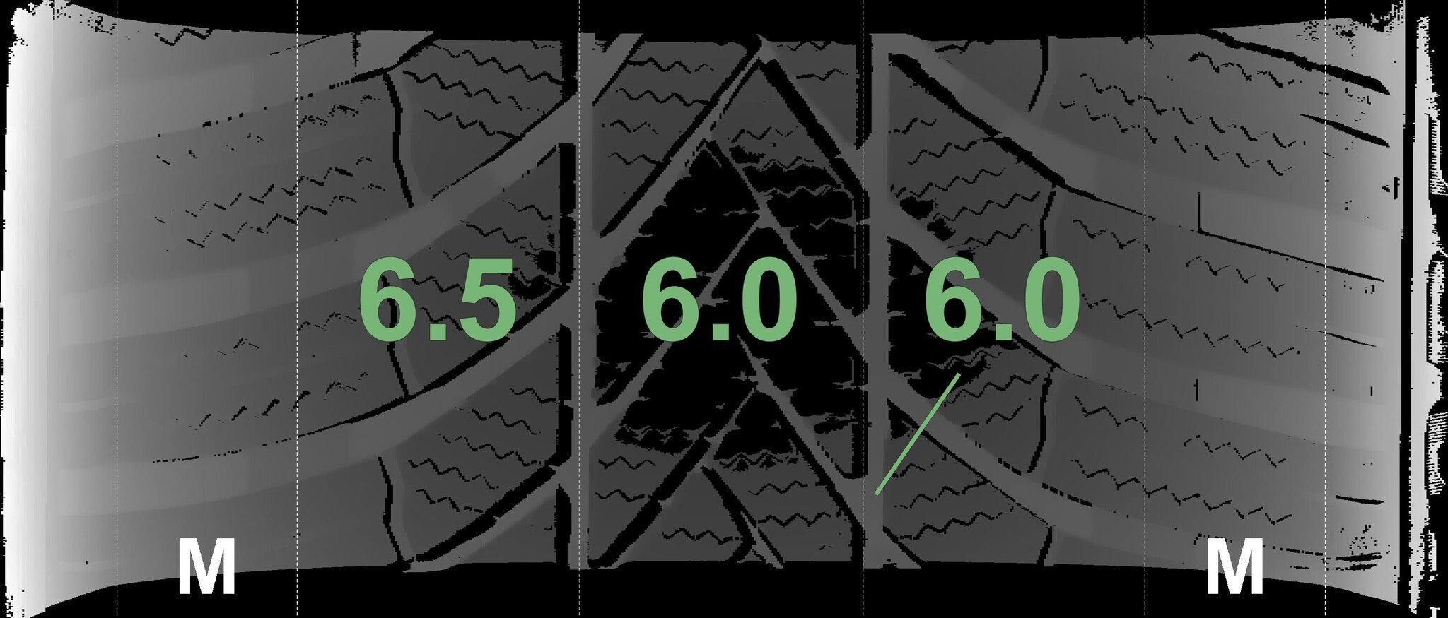 Die gemessenen Profiltiefen und die Details der Felgen sind oben dargestellt.