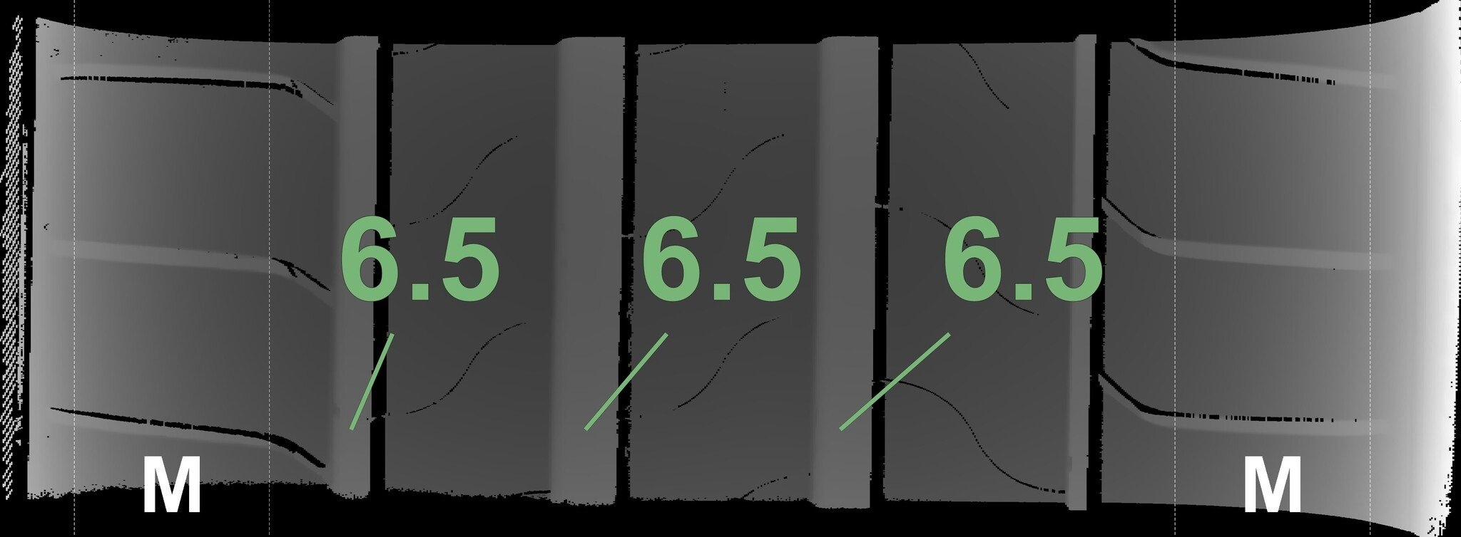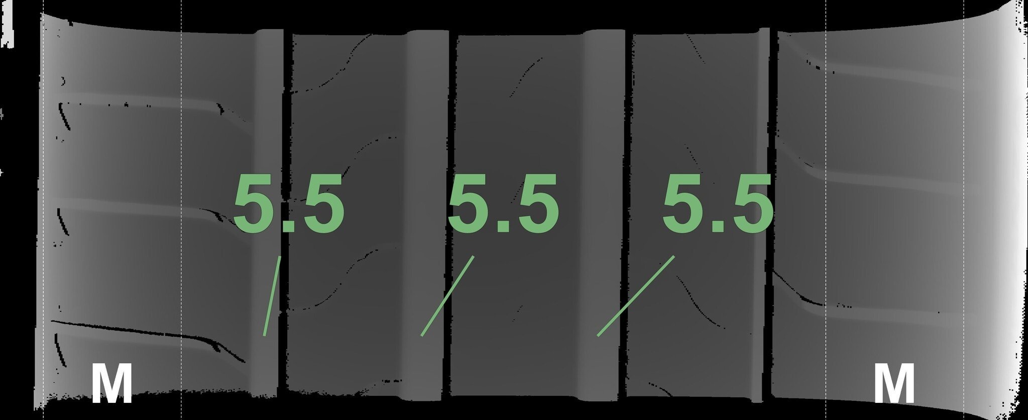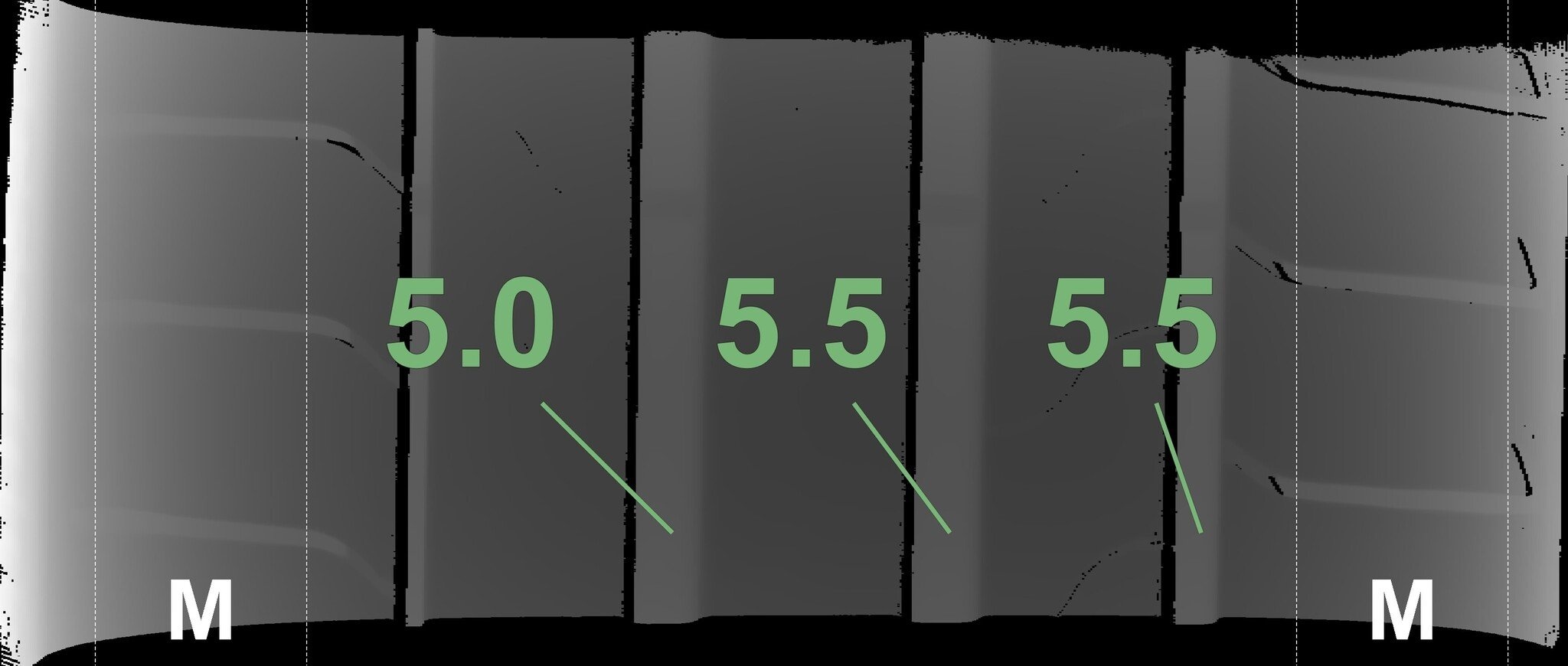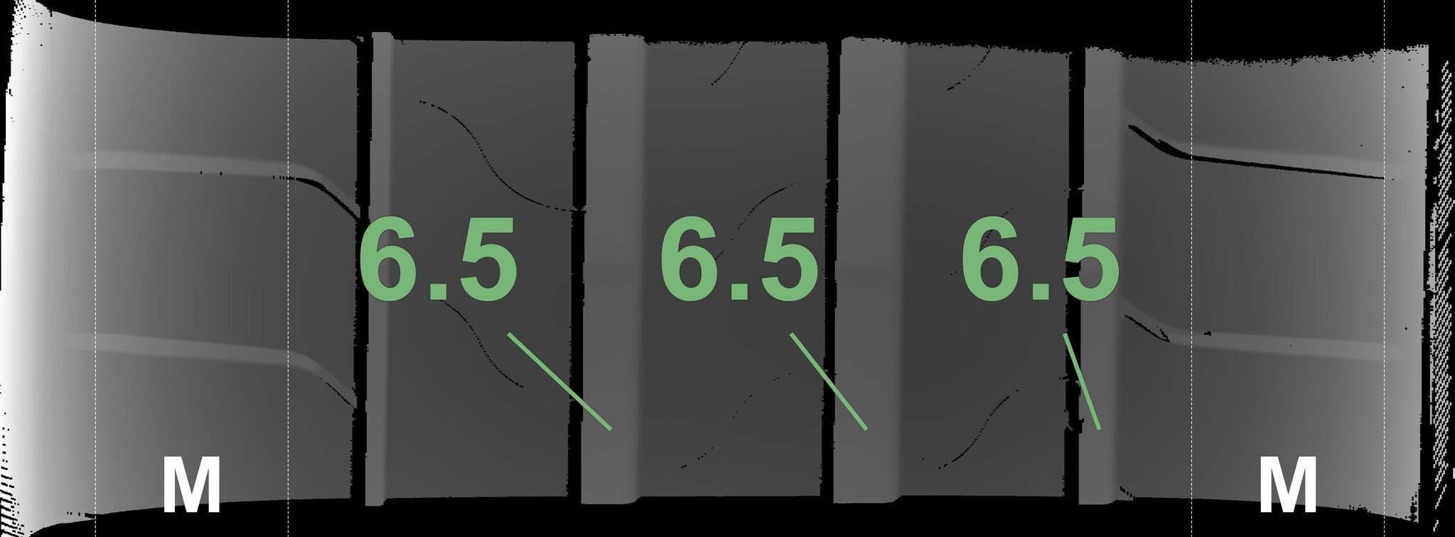 Die gemessenen Profiltiefen und die Details der Felgen sind oben dargestellt.