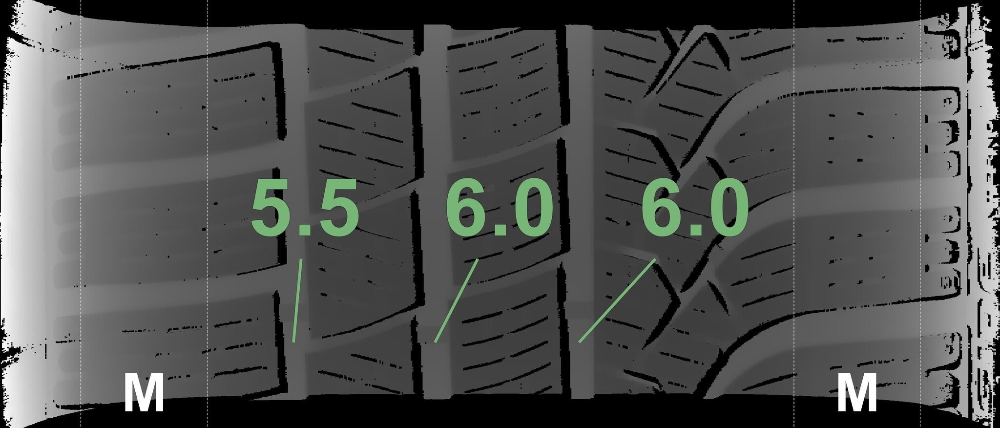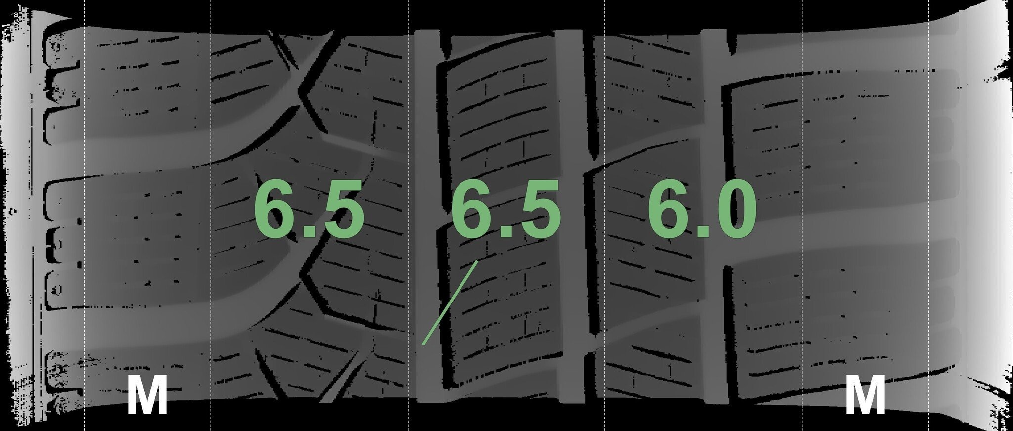 Die gemessenen Profiltiefen und Details zu den Felgen sind oben abgebildet.