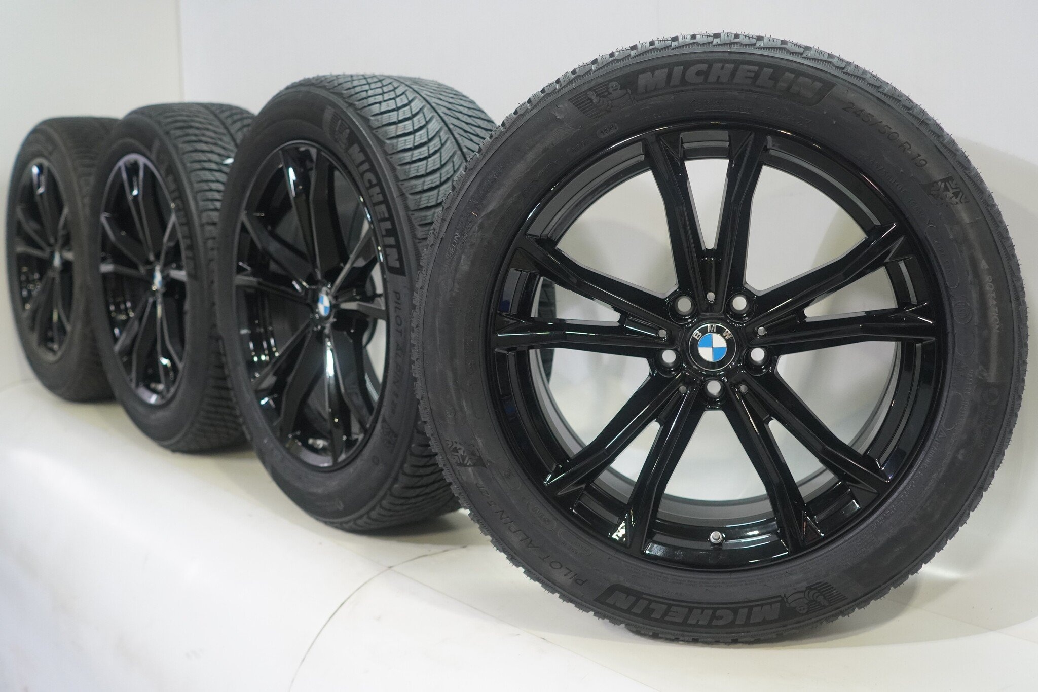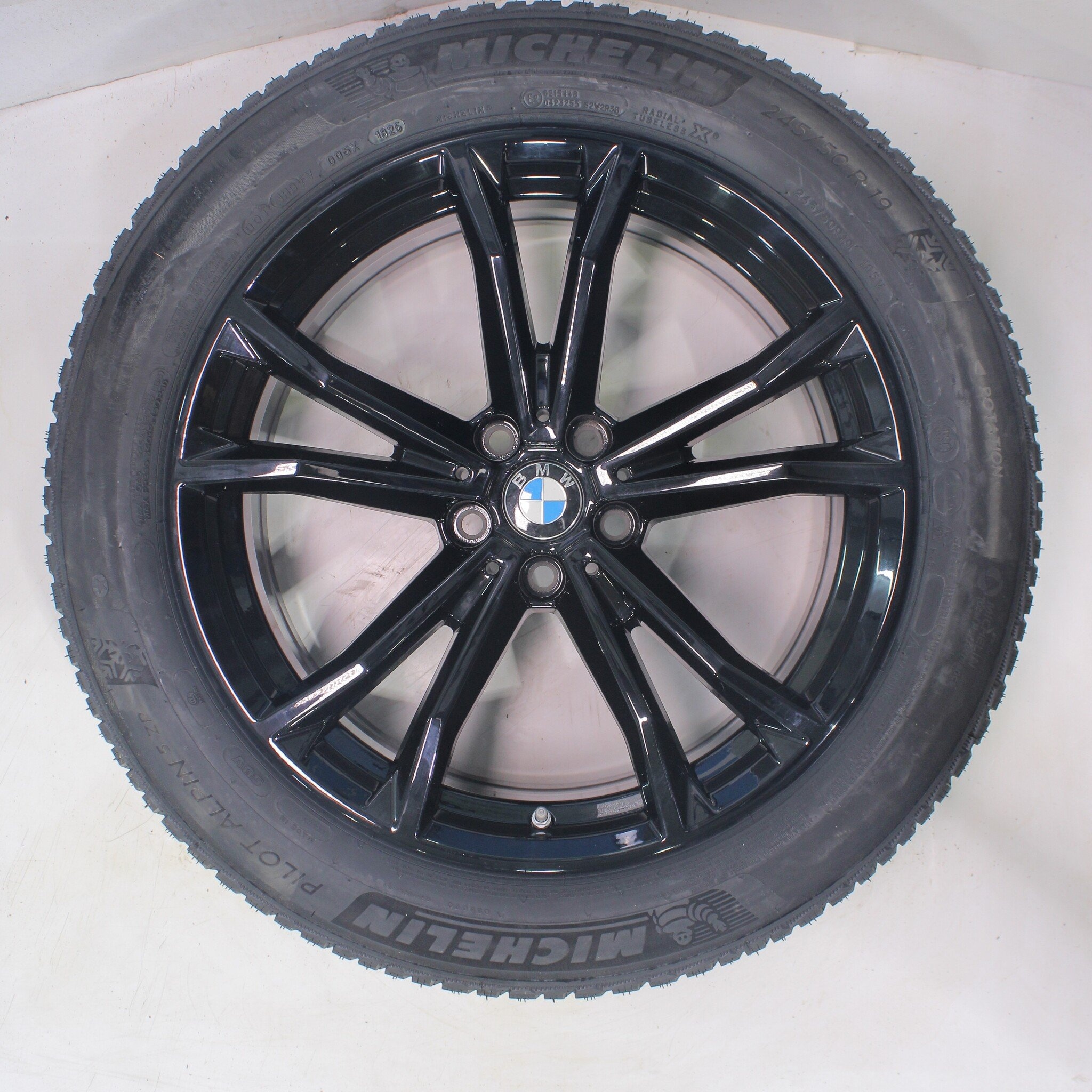 Original Radsatz von BMW, Styling 903 19-Zoll-Felgen mit Michelin Pilotalpin 5 Runflat Winterkompletträdern. Diese Felgen sind Original Felgen der Marke BMW und passend für: BMW 7er G70 X3 G45.