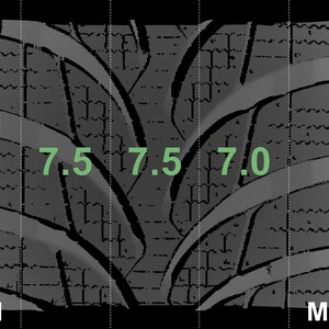| Zustand | Profiltiefe | DOT | Vorderachse Links | Neu | 7,0 mm | 2224 |