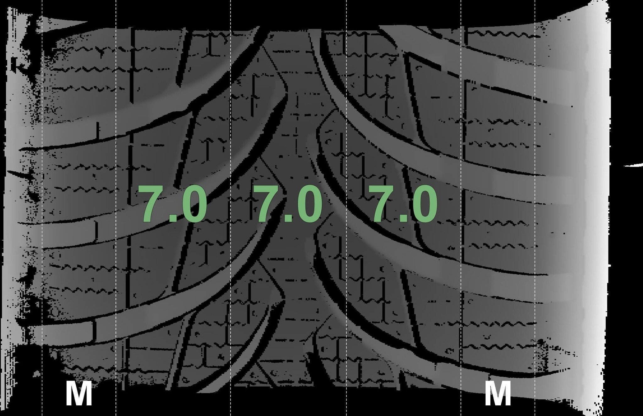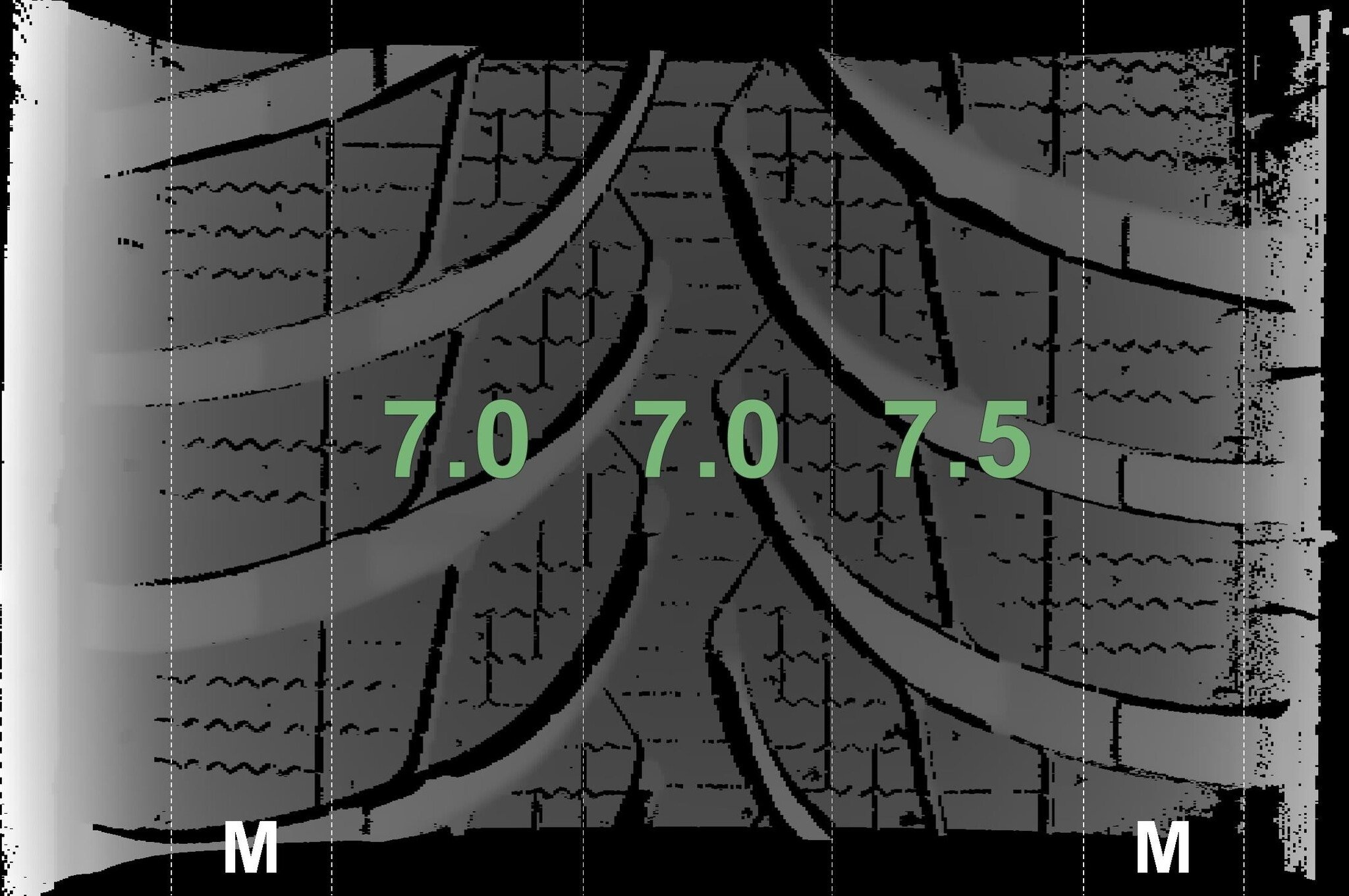 Zustand | Profiltiefe | DOT | Hinterachse Rechts | Neu | 7,0 mm | 1524 |
