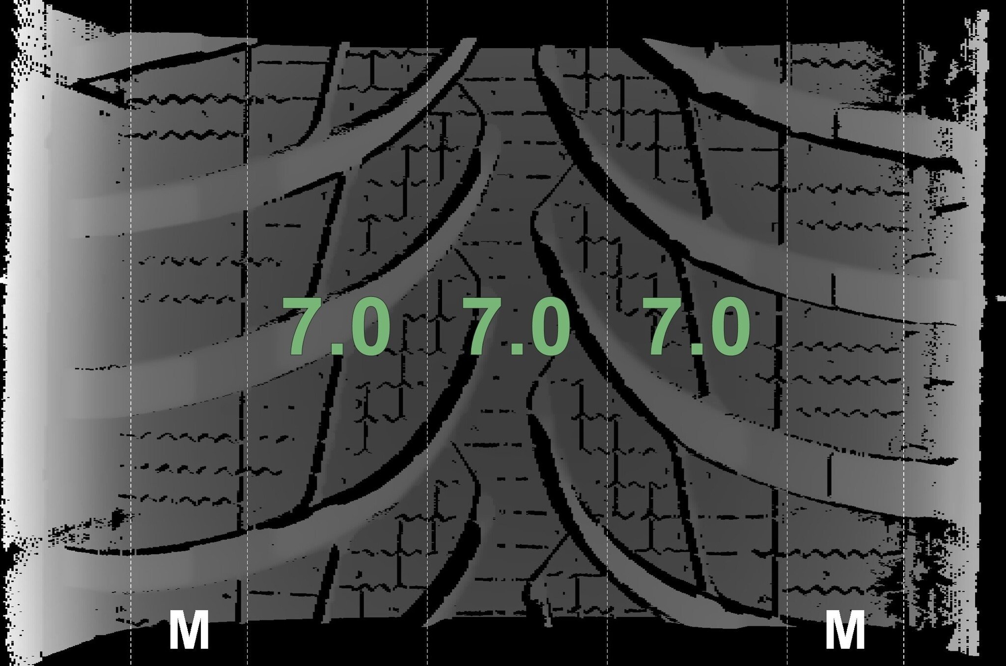 Zustand | Profiltiefe | DOT | Hinterachse Rechts | Neu | 7,0 mm | 2124 |