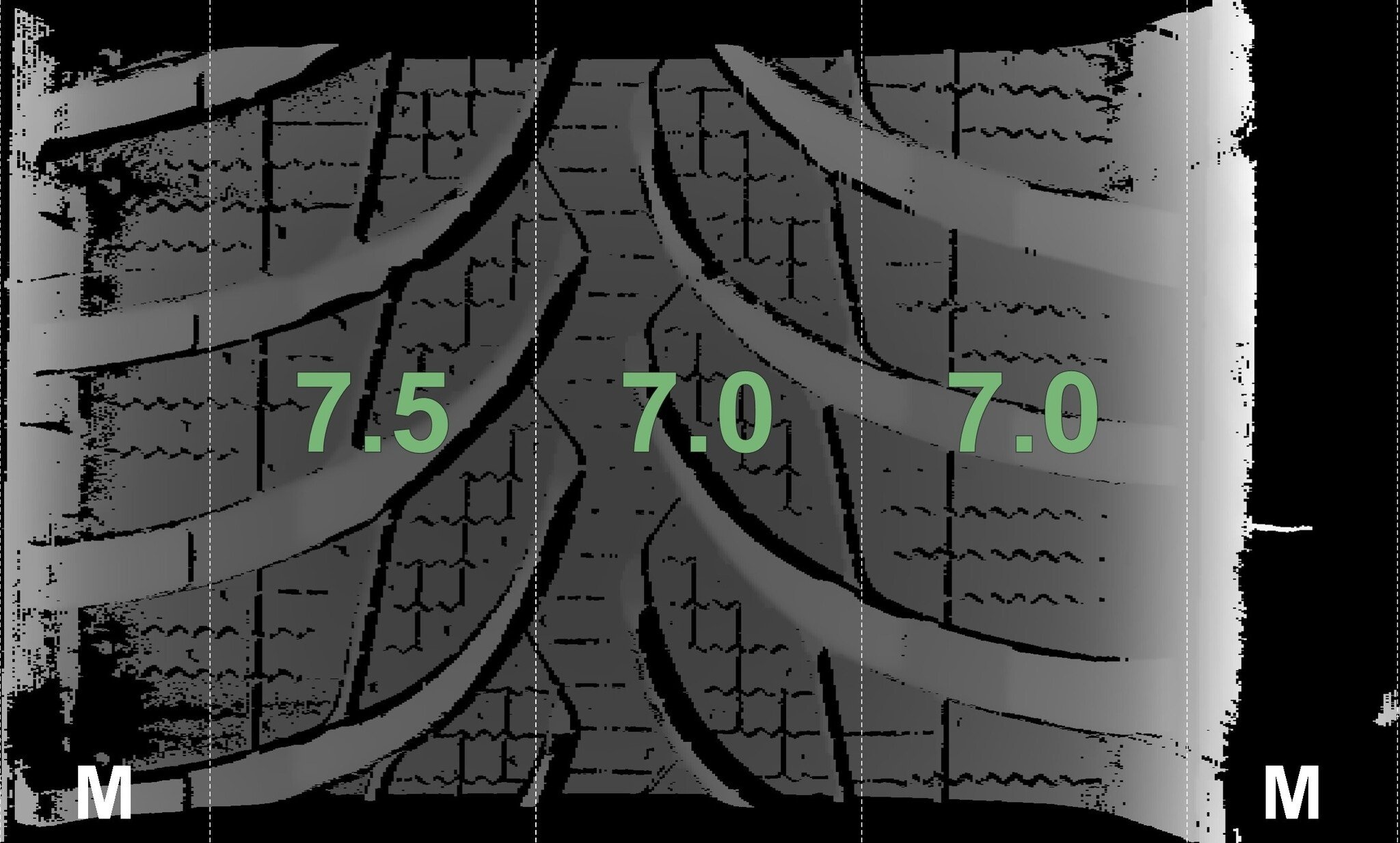 Die gemessenen Profiltiefen und Details zu den Felgen sind oben abgebildet.