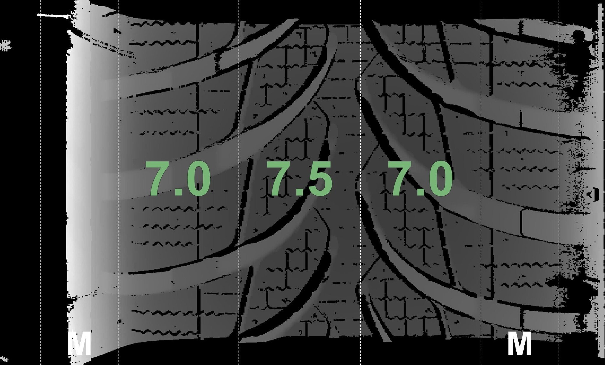 Die gemessenen Profiltiefen und Details zu den Felgen sind oben abgebildet.