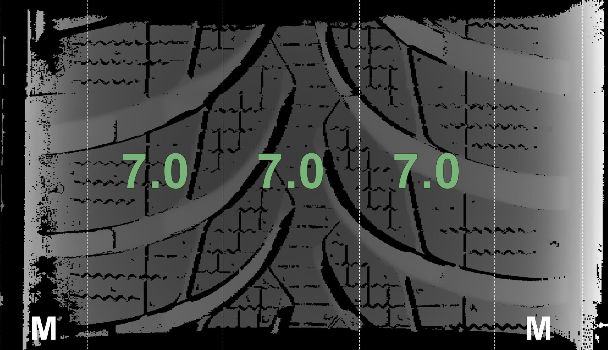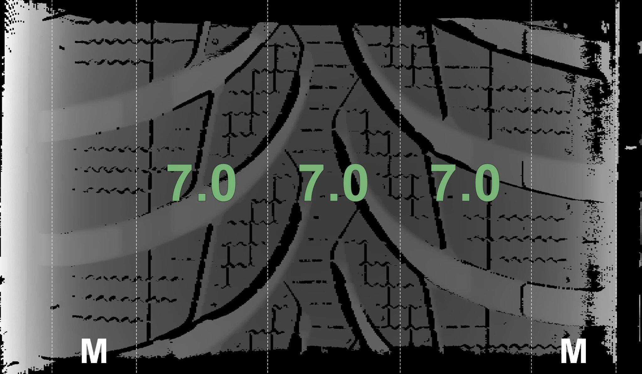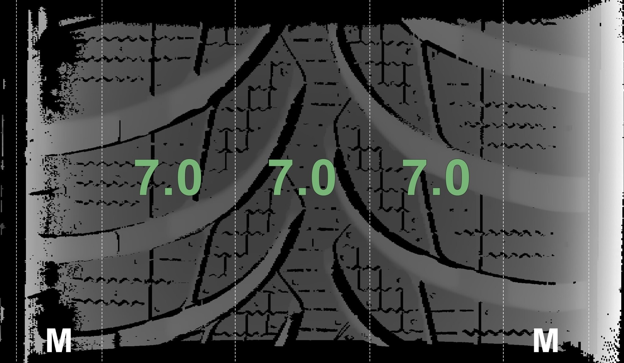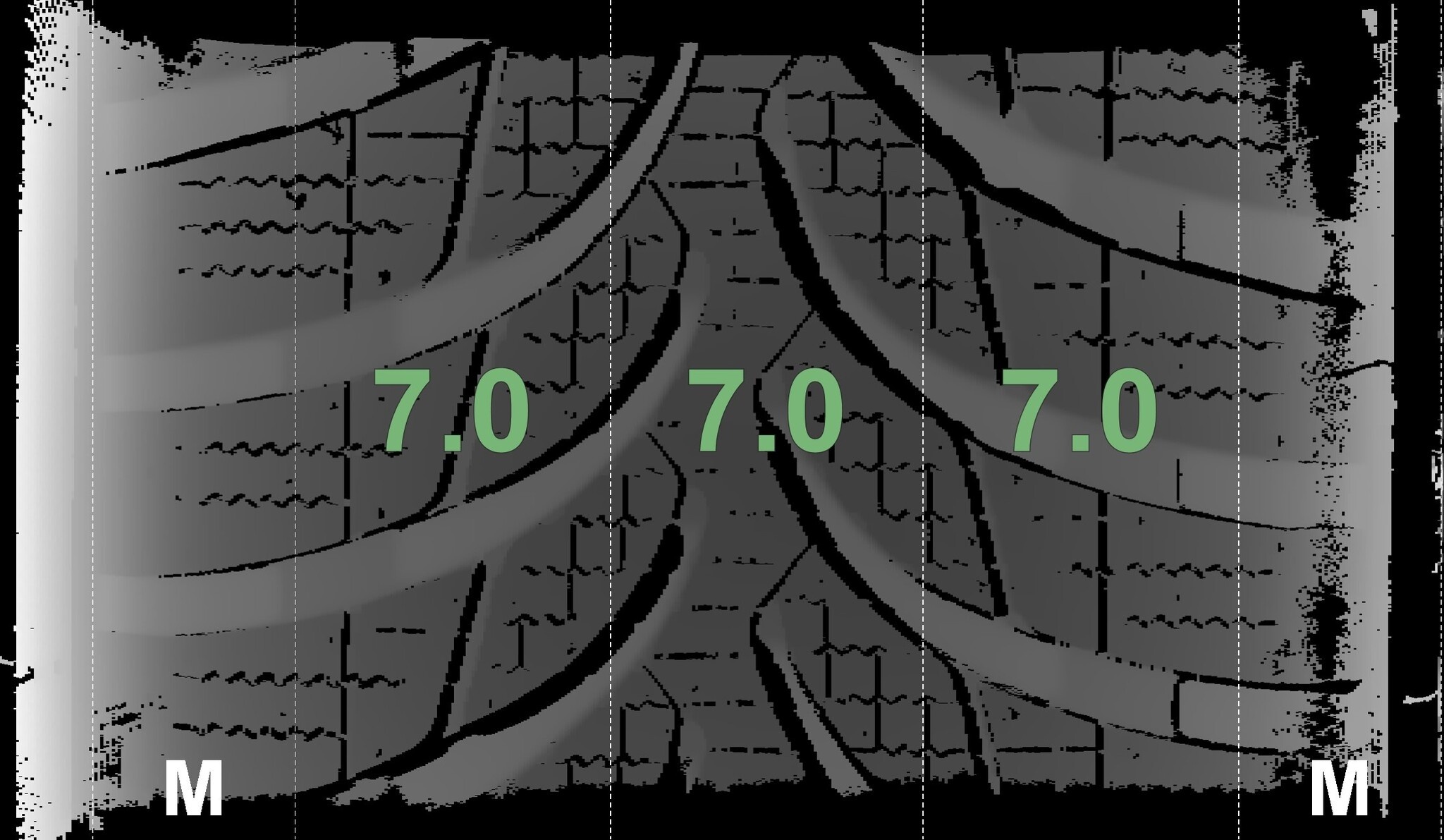 | Zustand | Profiltiefe | DOT | Vorderachse Links | Neu | 7,0 mm | 1521 |