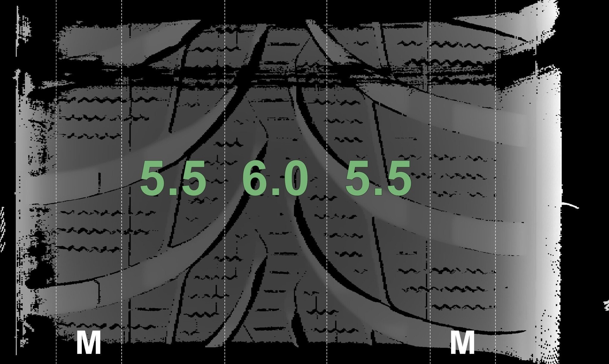 | Zustand | Profiltiefe | DOT | Vorderachse Links | Gebraucht | 6,0 mm | 2920 |