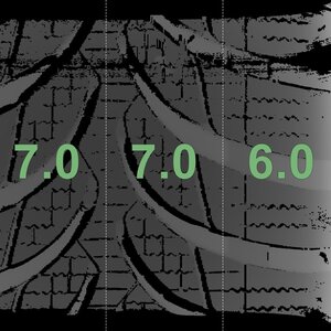 | Zustand | Profiltiefe | DOT | Vorderachse Links | Gebraucht | 7,0 mm | 4120 |