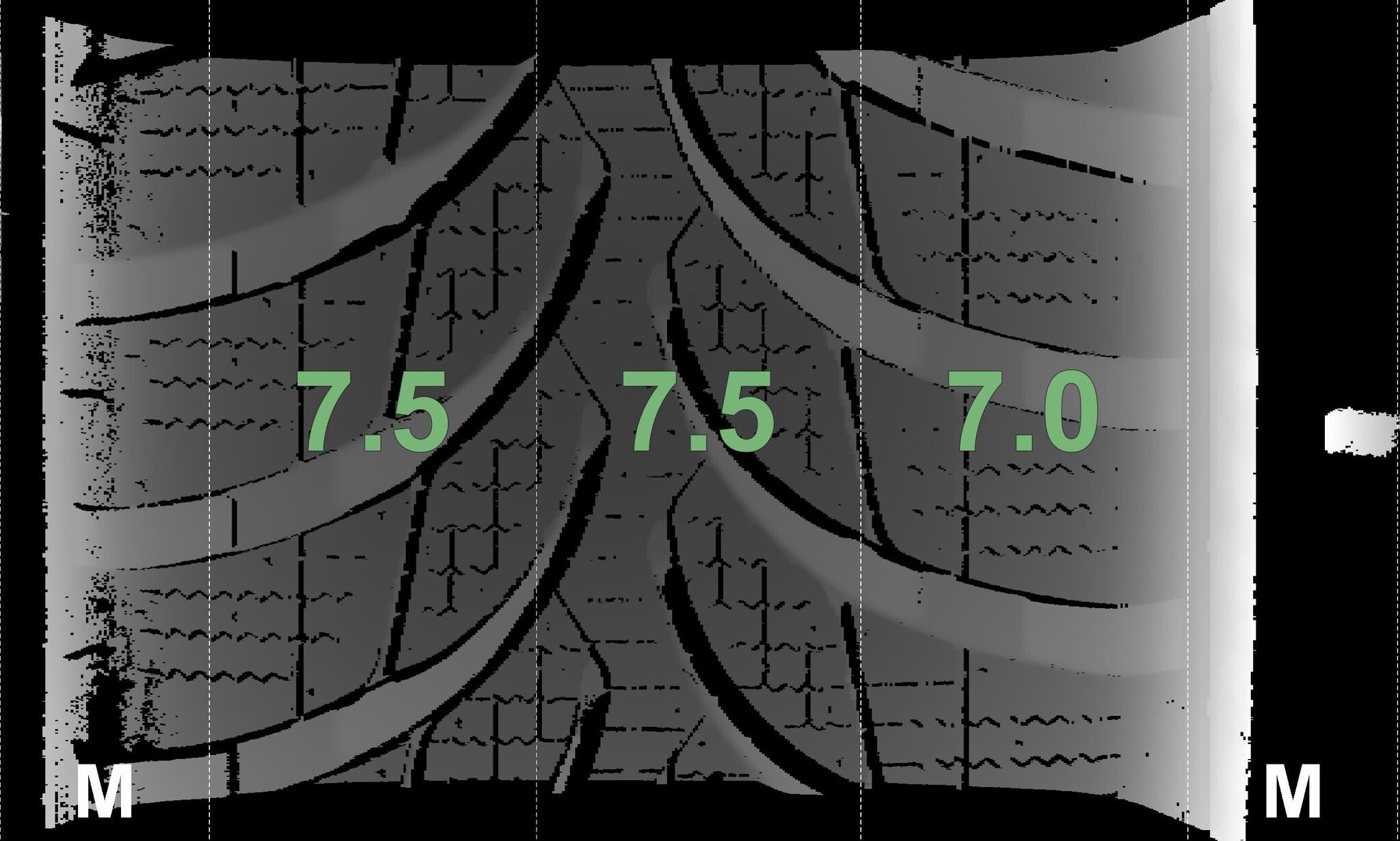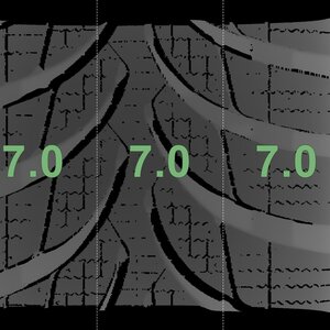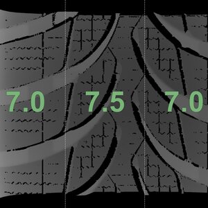 | Zustand | Profiltiefe | DOT | Vorderachse Links | Neu | 7,0 mm | 2525 |