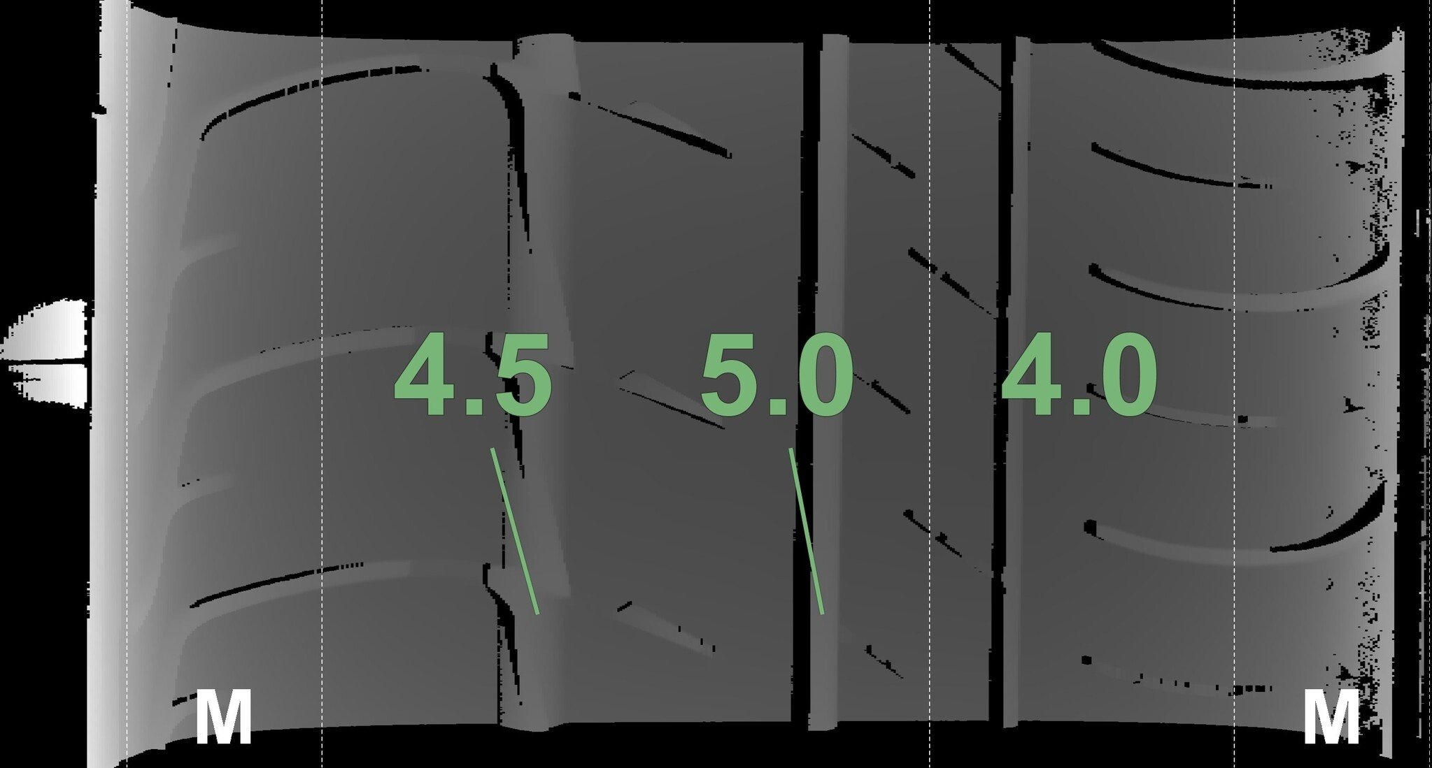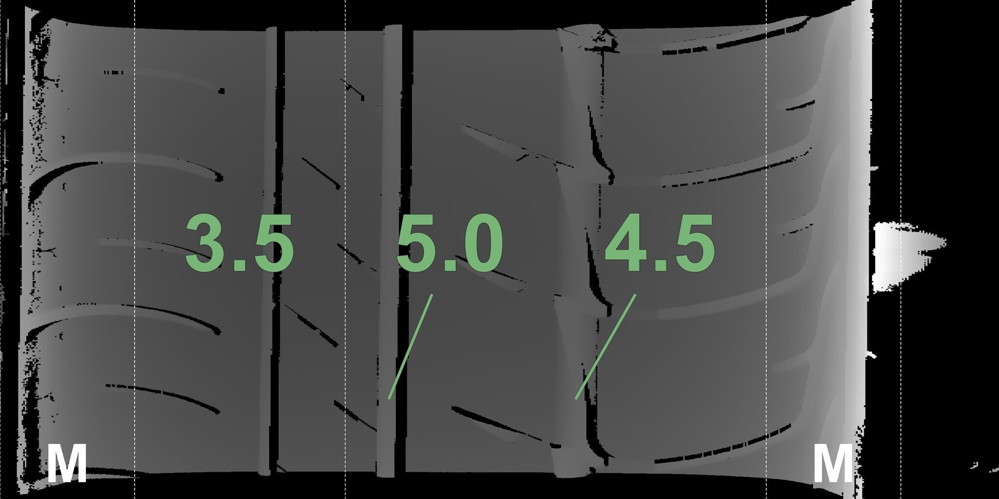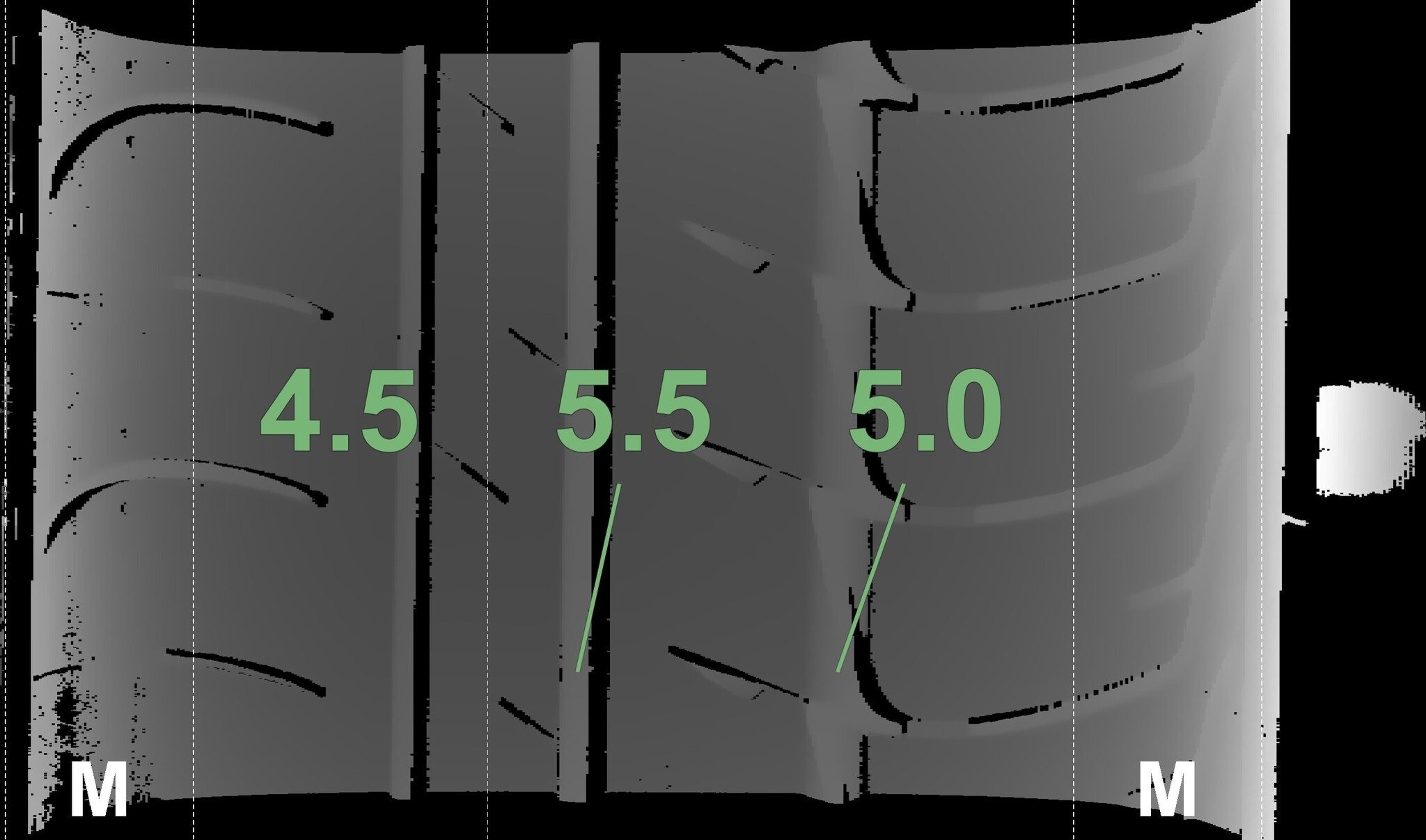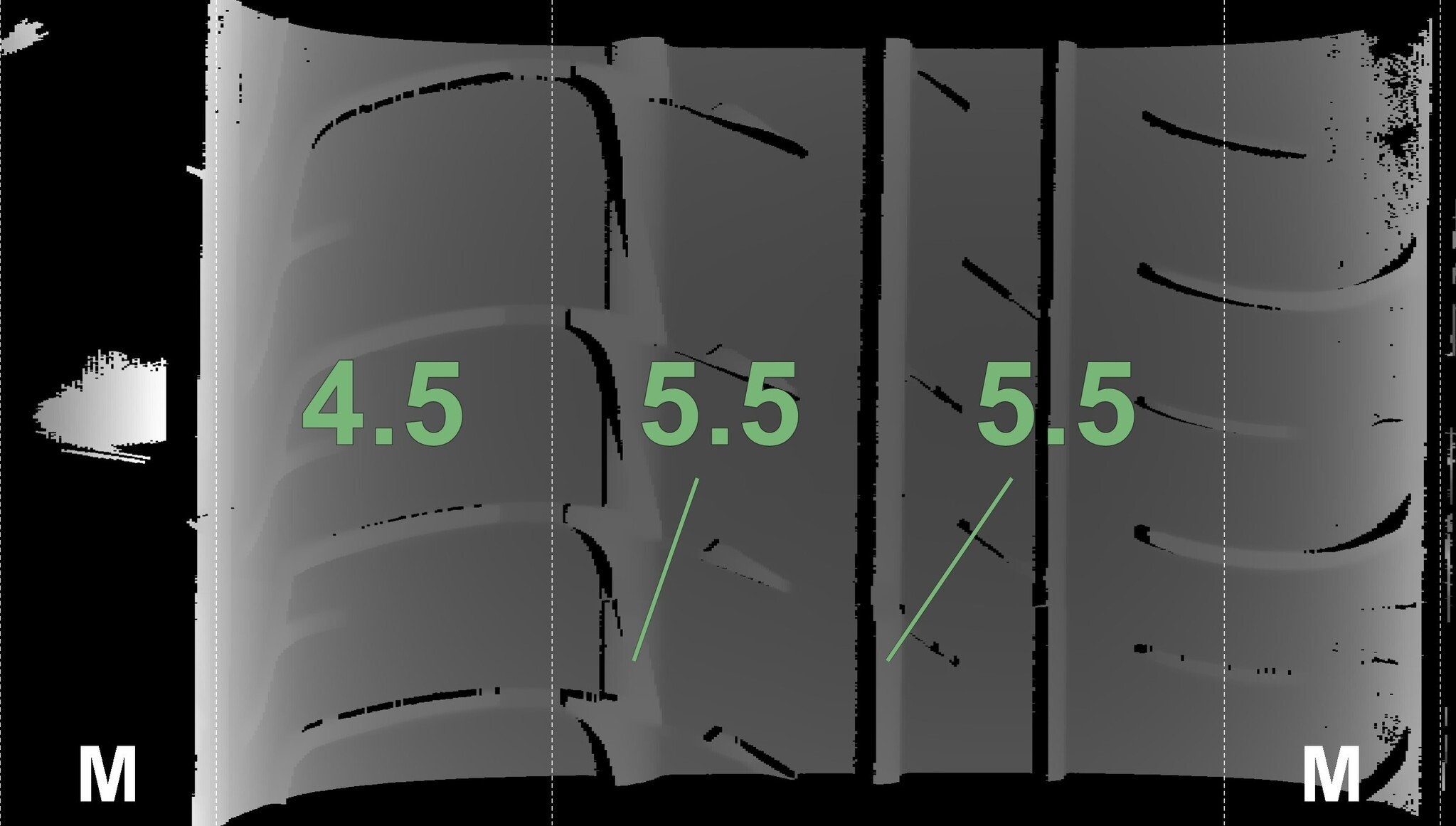 Die gemessenen Profiltiefen und Details zu den Felgen sind oben abgebildet.