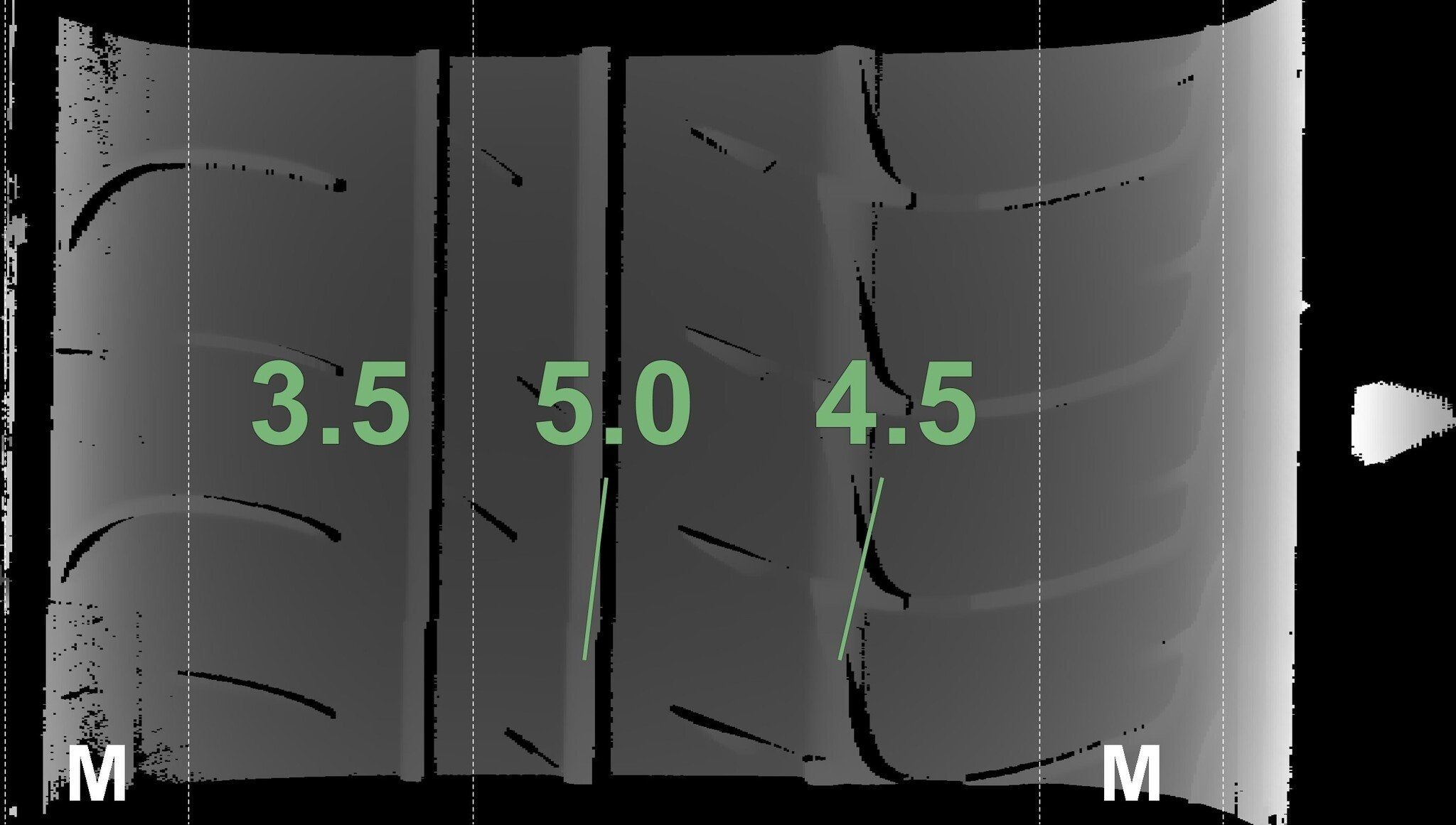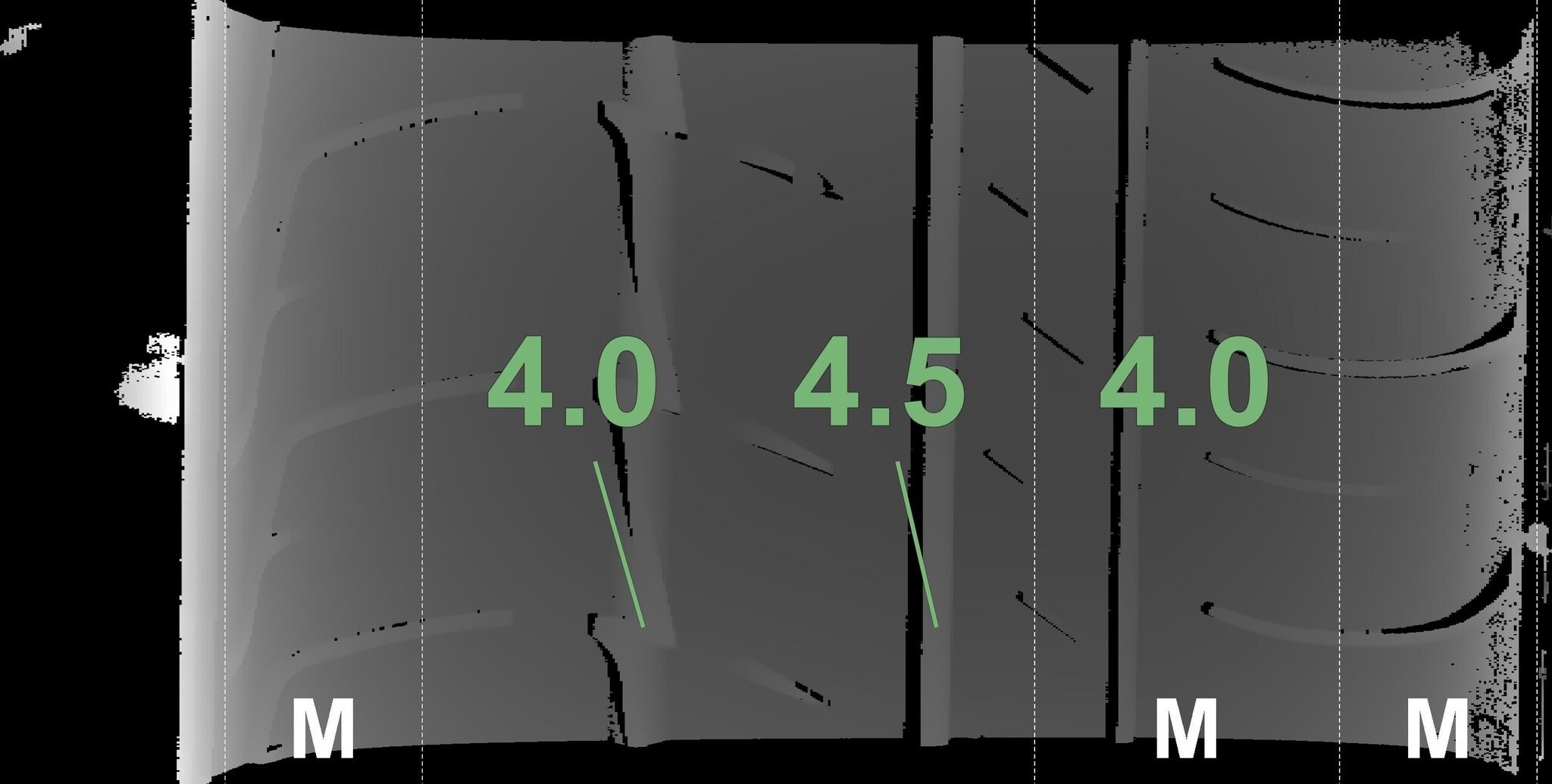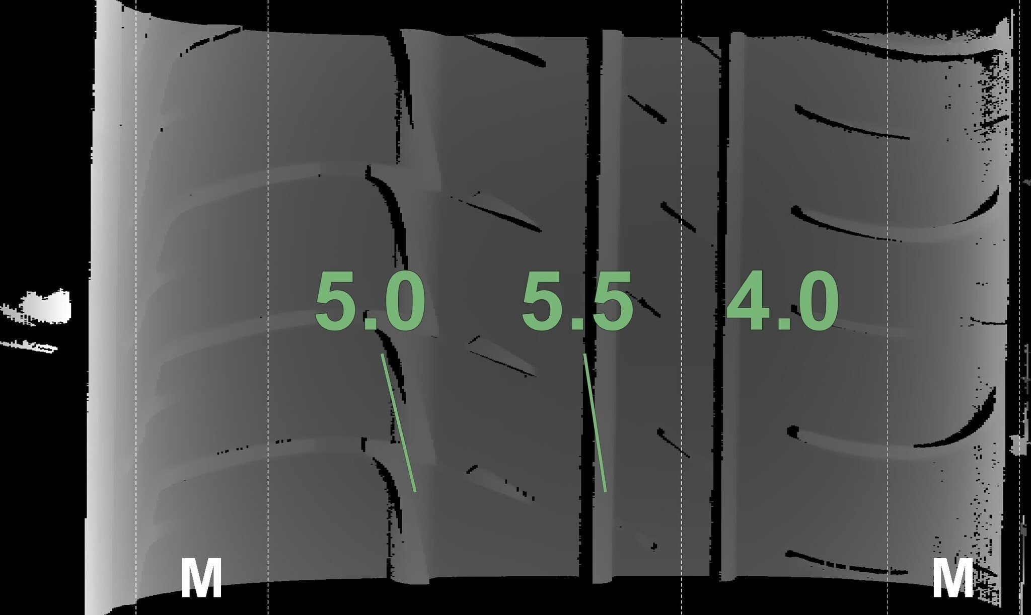 Die gemessenen Profiltiefen und Details zu den Felgen sind oben abgebildet.