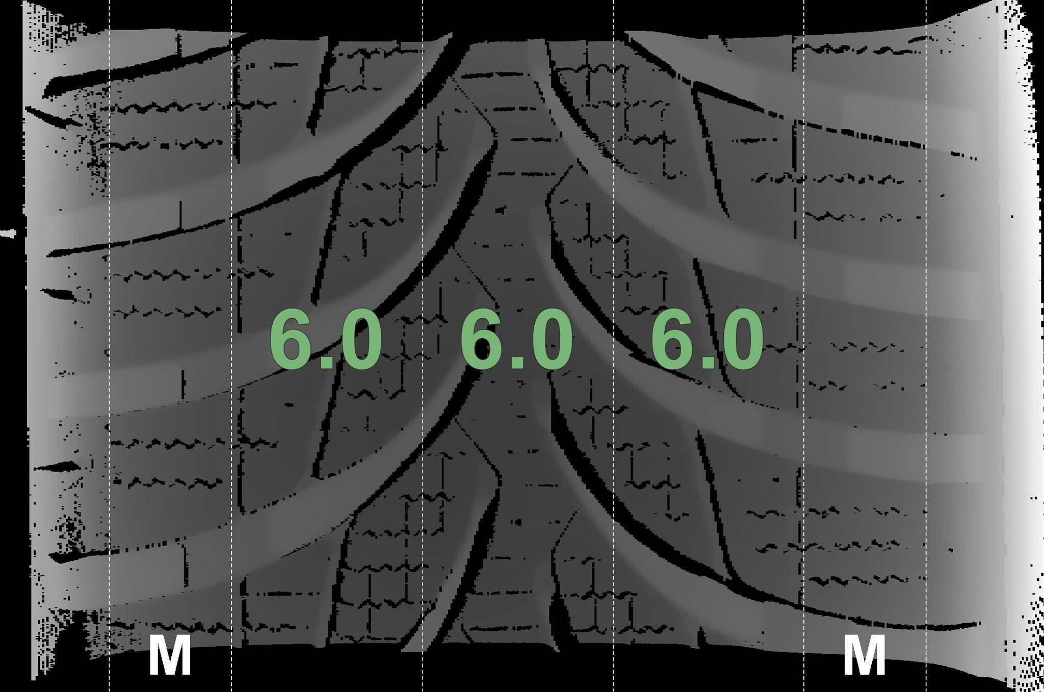 | Zustand | Profiltiefe | DOT | Vorderachse Links | Gebraucht | 6,0 mm | 2721 |
