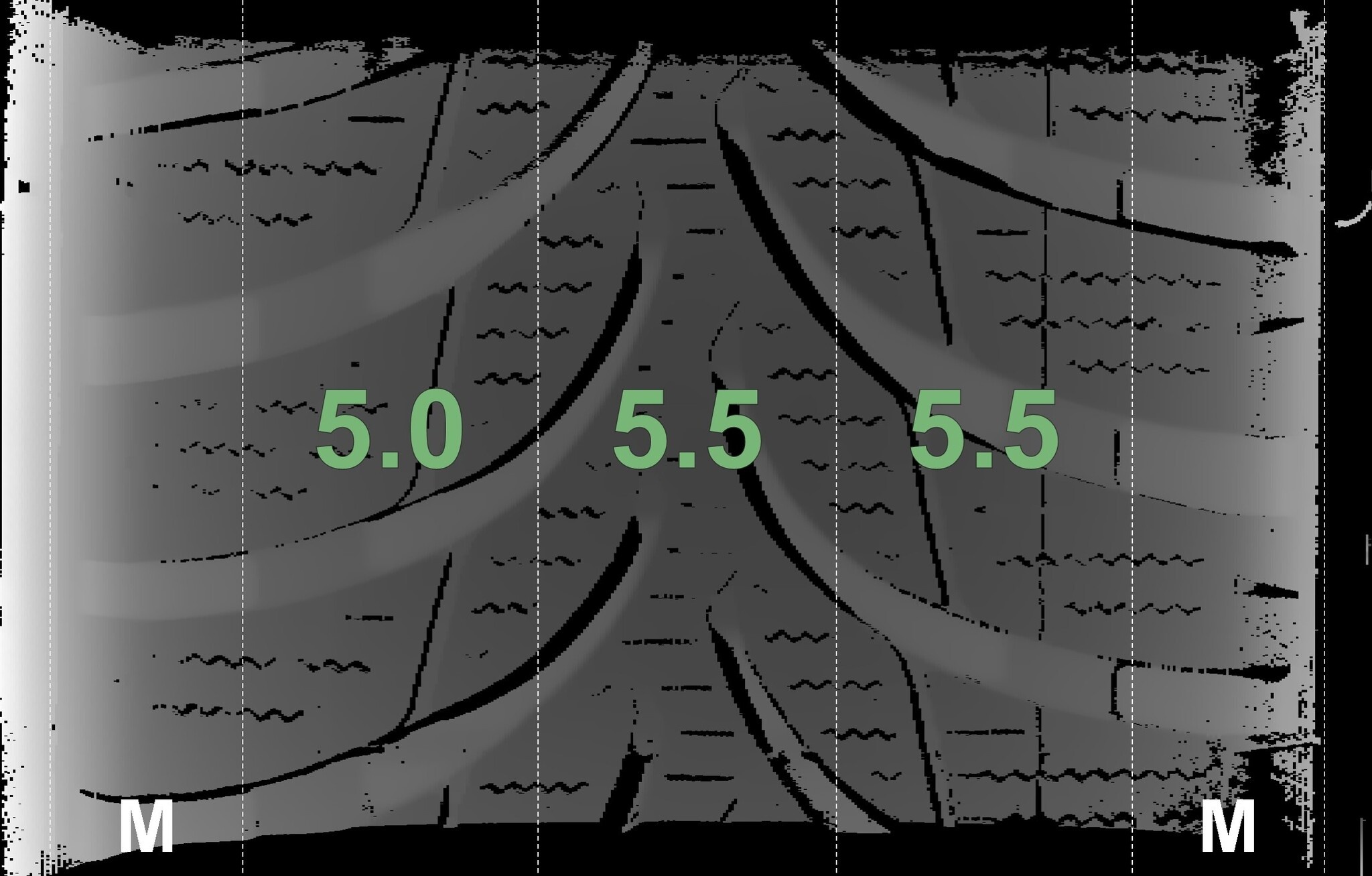 Die gemessenen Profiltiefen und Details zu den Felgen sind oben abgebildet.
