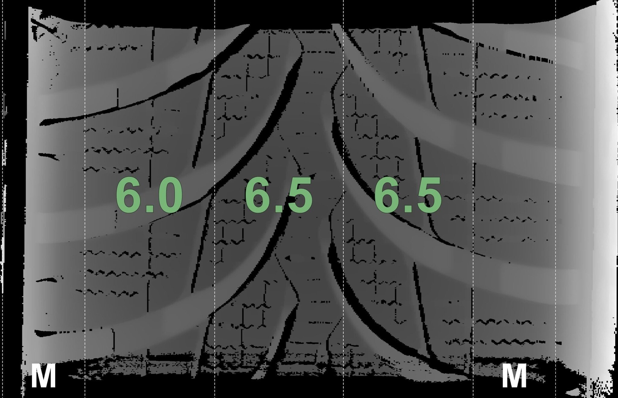 | Zustand | Profiltiefe | DOT | Vorderachse Links | Gebraucht | 6.5 mm | 4220 |