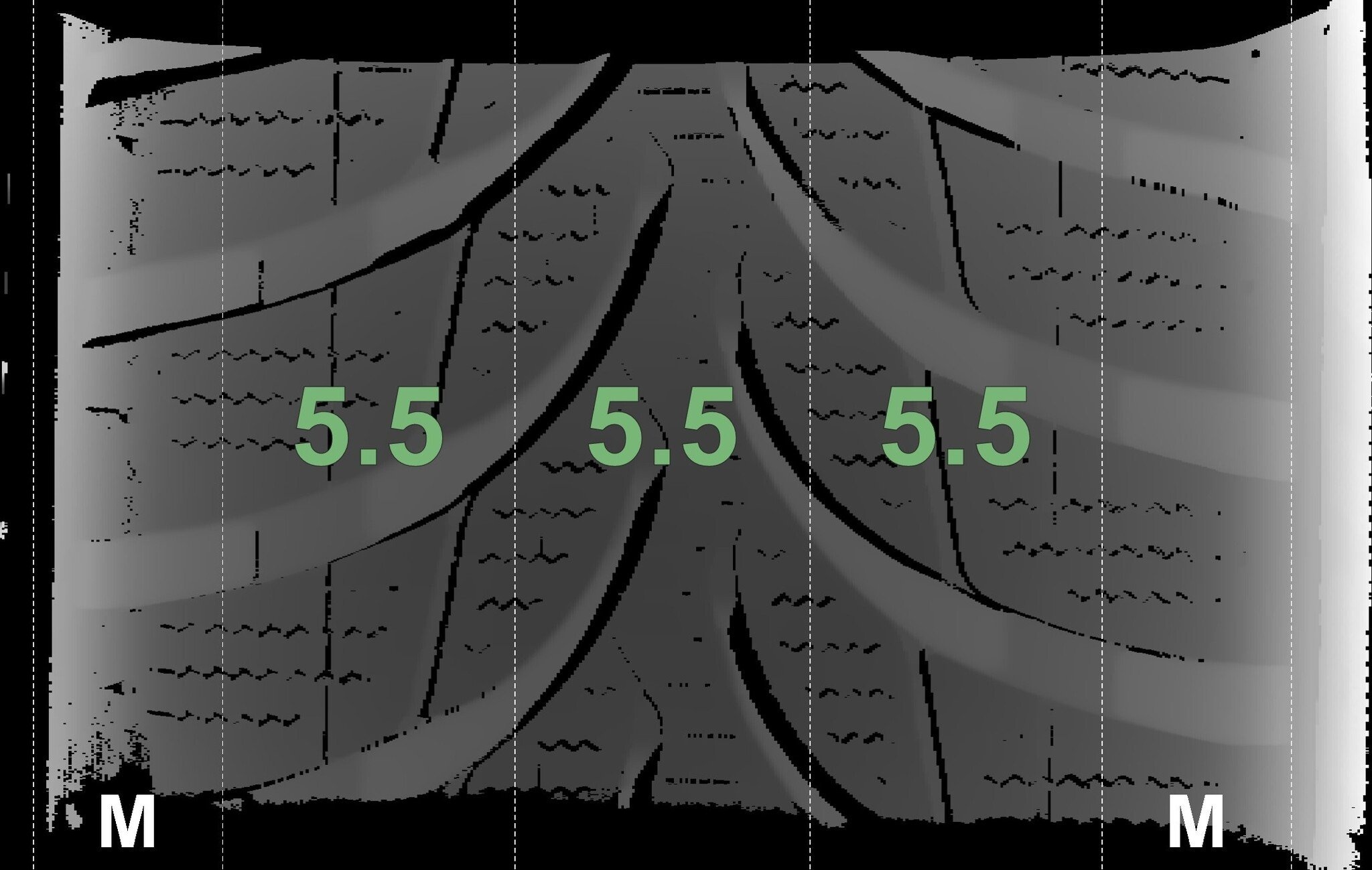 Die gemessenen Profiltiefen und die Details der Felgen sind oben dargestellt.