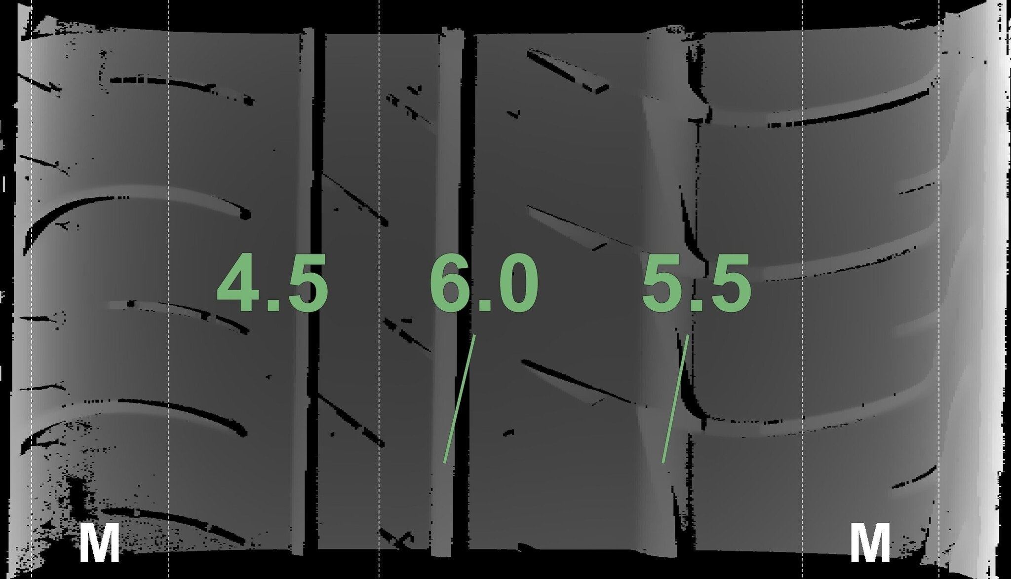 Die gemessenen Profiltiefen und die Details der Felgen sind oben aufgeführt.