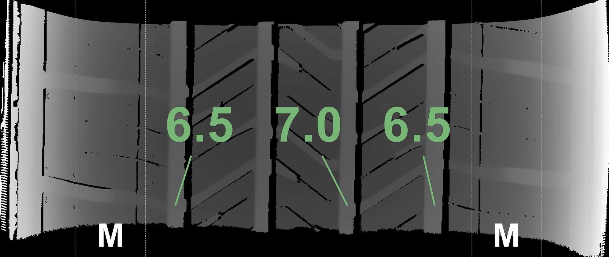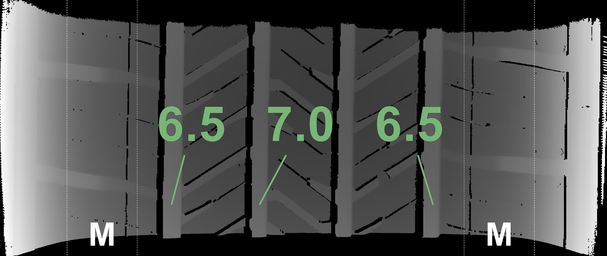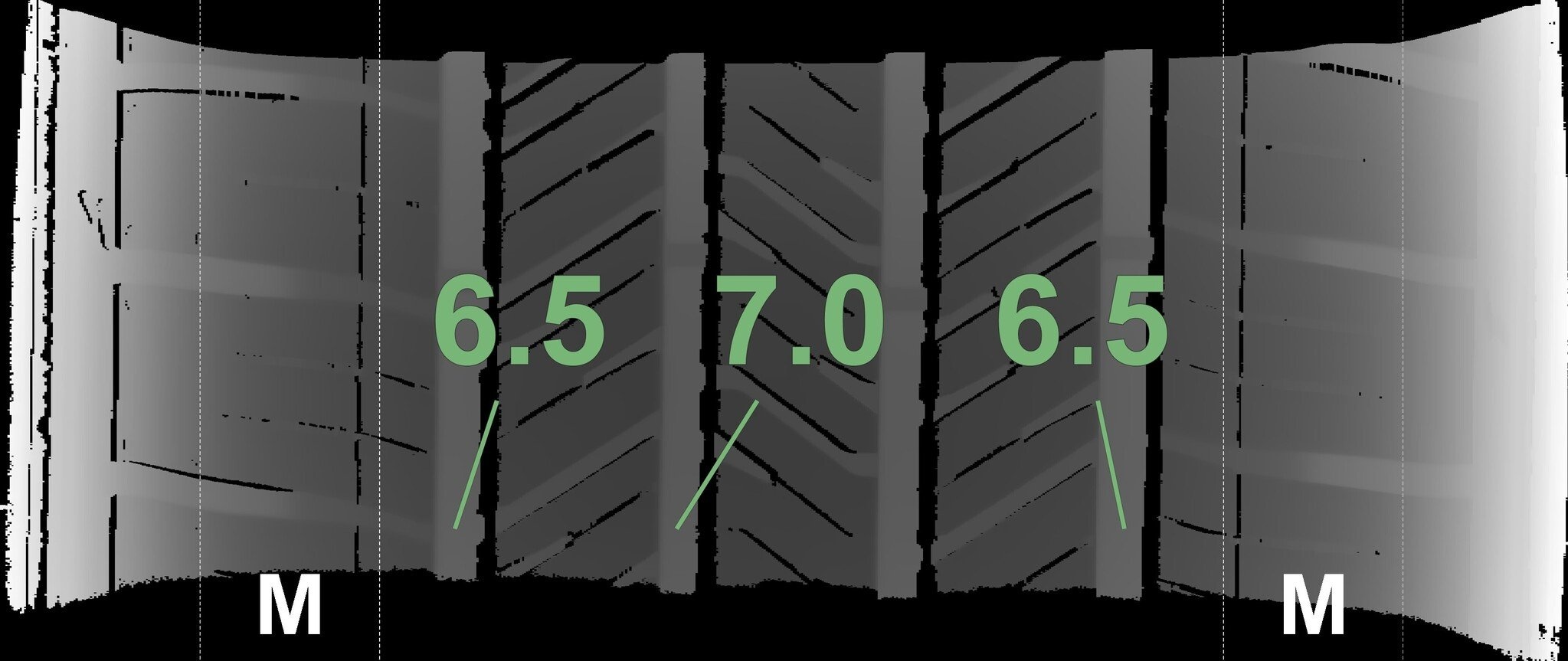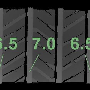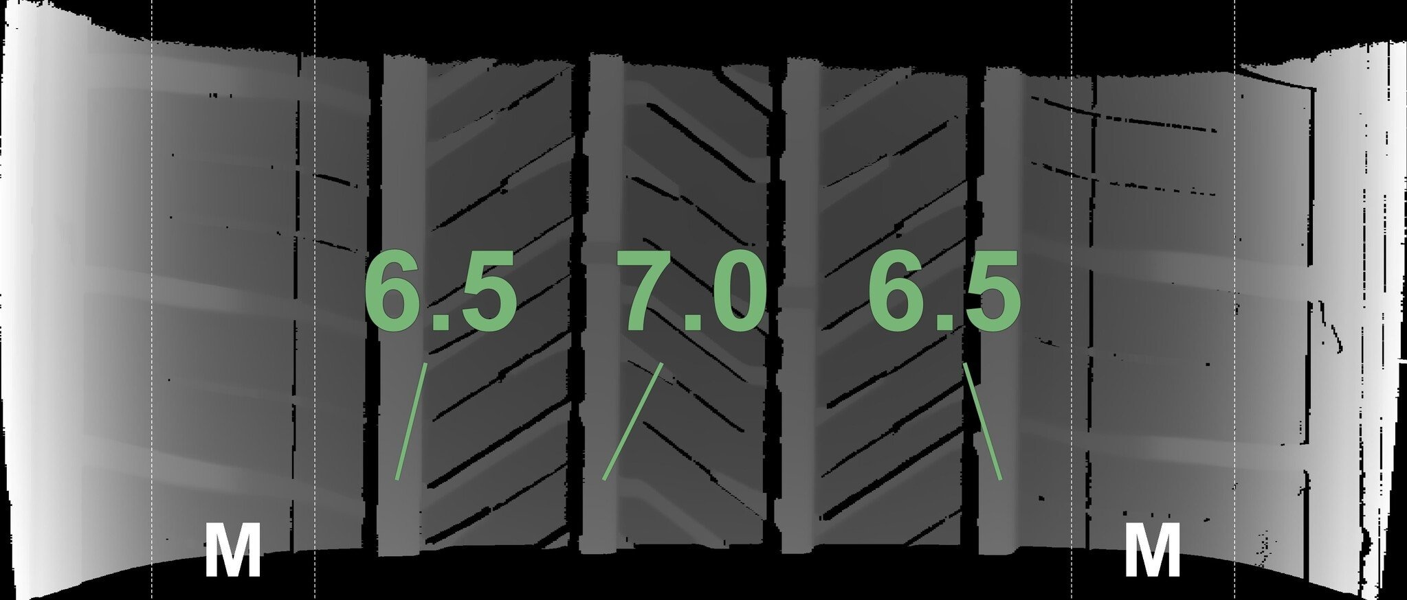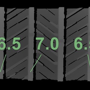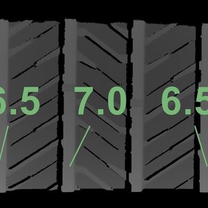 Die gemessenen Profiltiefen und die Details der Felgen sind oben dargestellt.