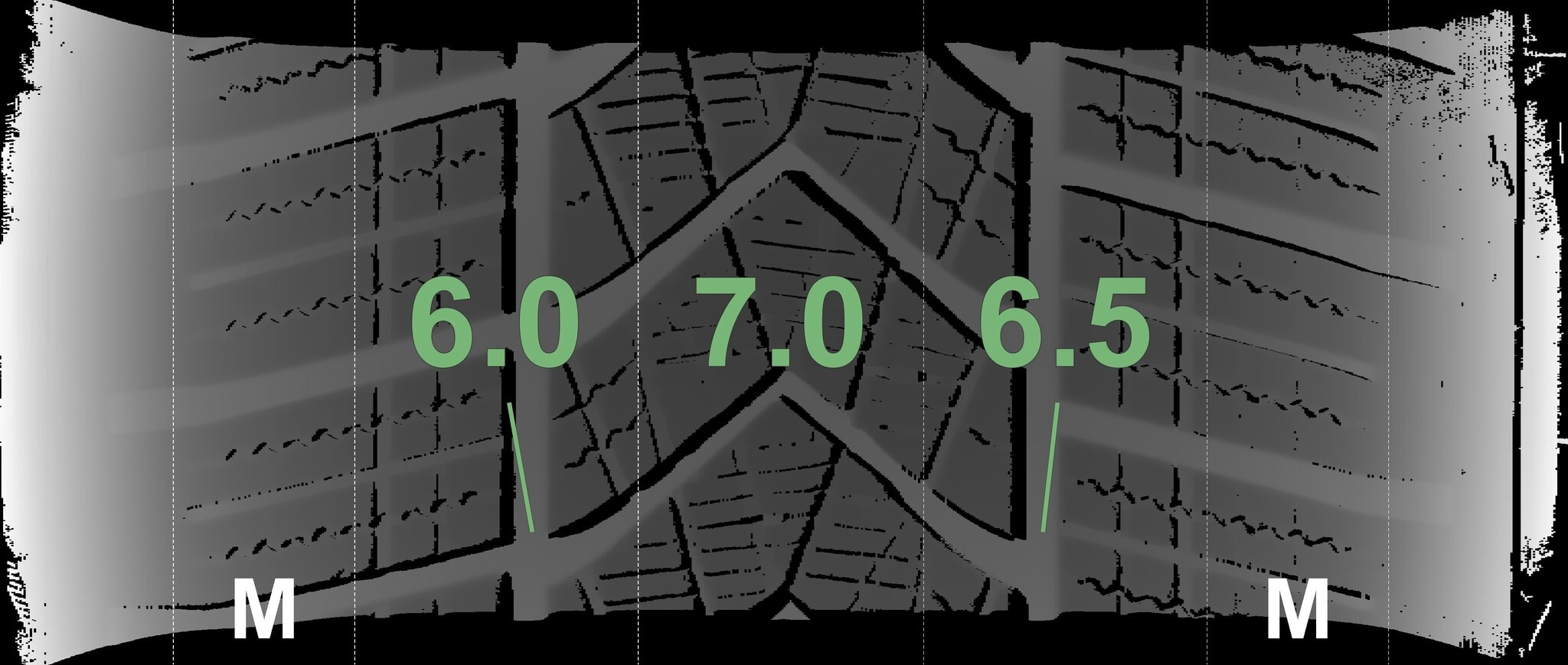 Die gemessenen Profiltiefen und Details zu den Felgen sind oben abgebildet.