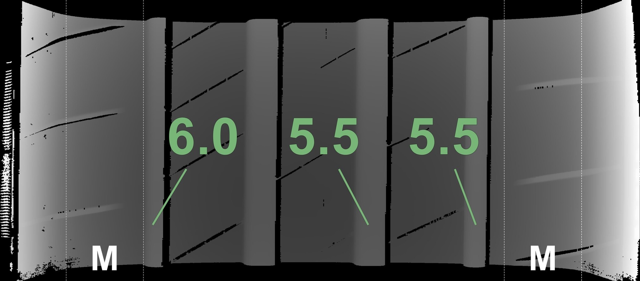 Die gemessenen Profiltiefen und die Details der Felgen sind oben aufgeführt.