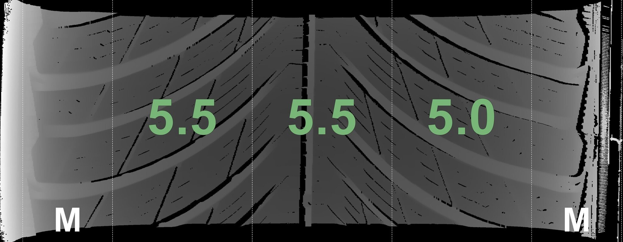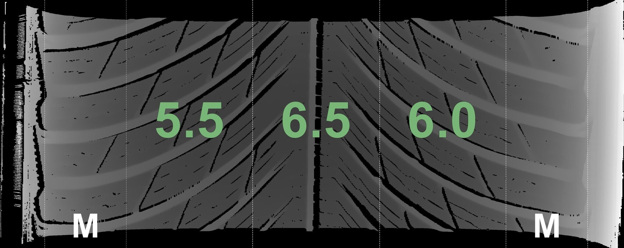 Die gemessenen Profiltiefen und Details zu den Felgen sind oben abgebildet.