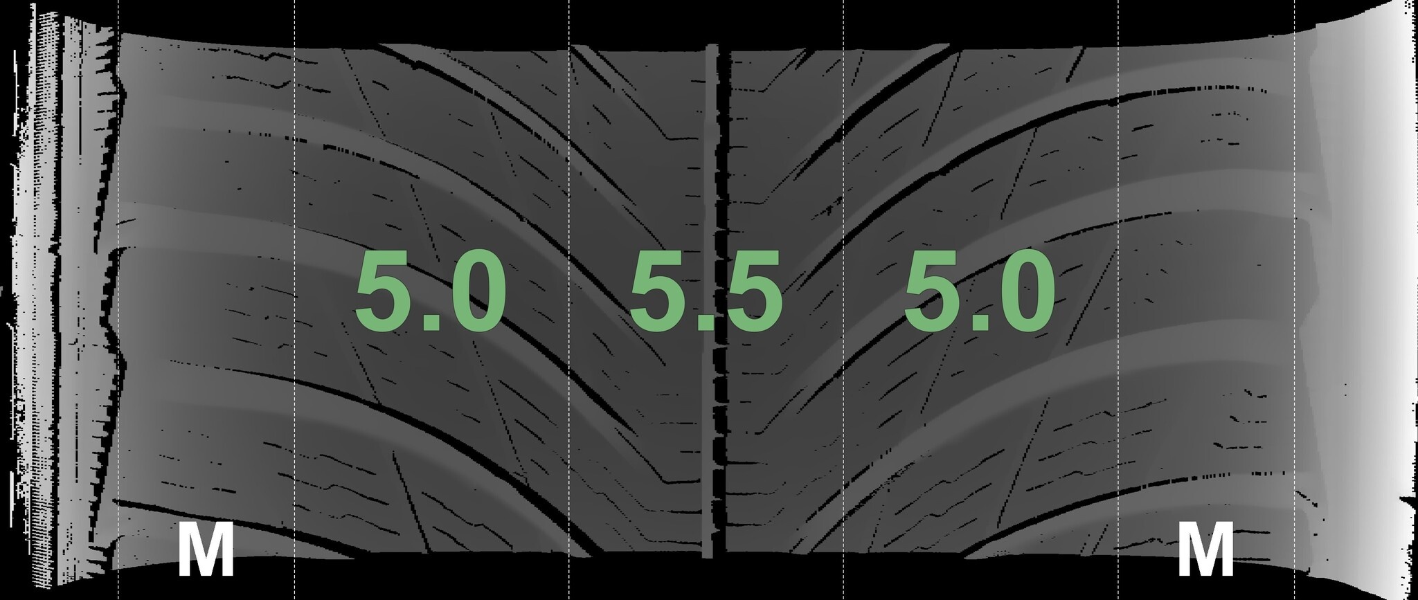 Die gemessenen Profiltiefen und Details zu den Felgen sind oben abgebildet.