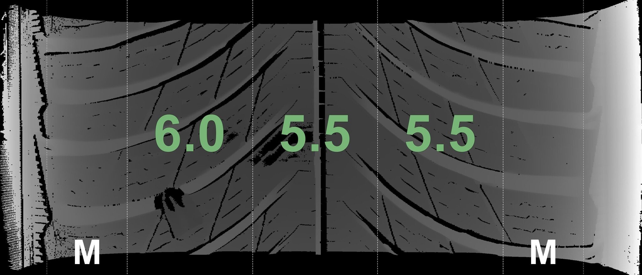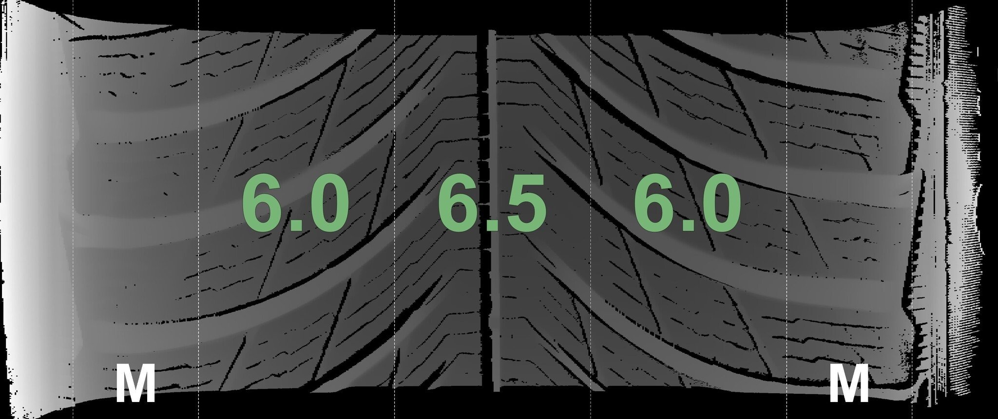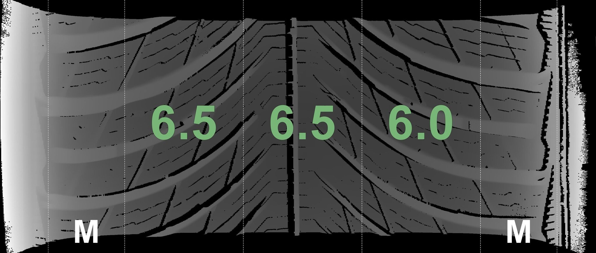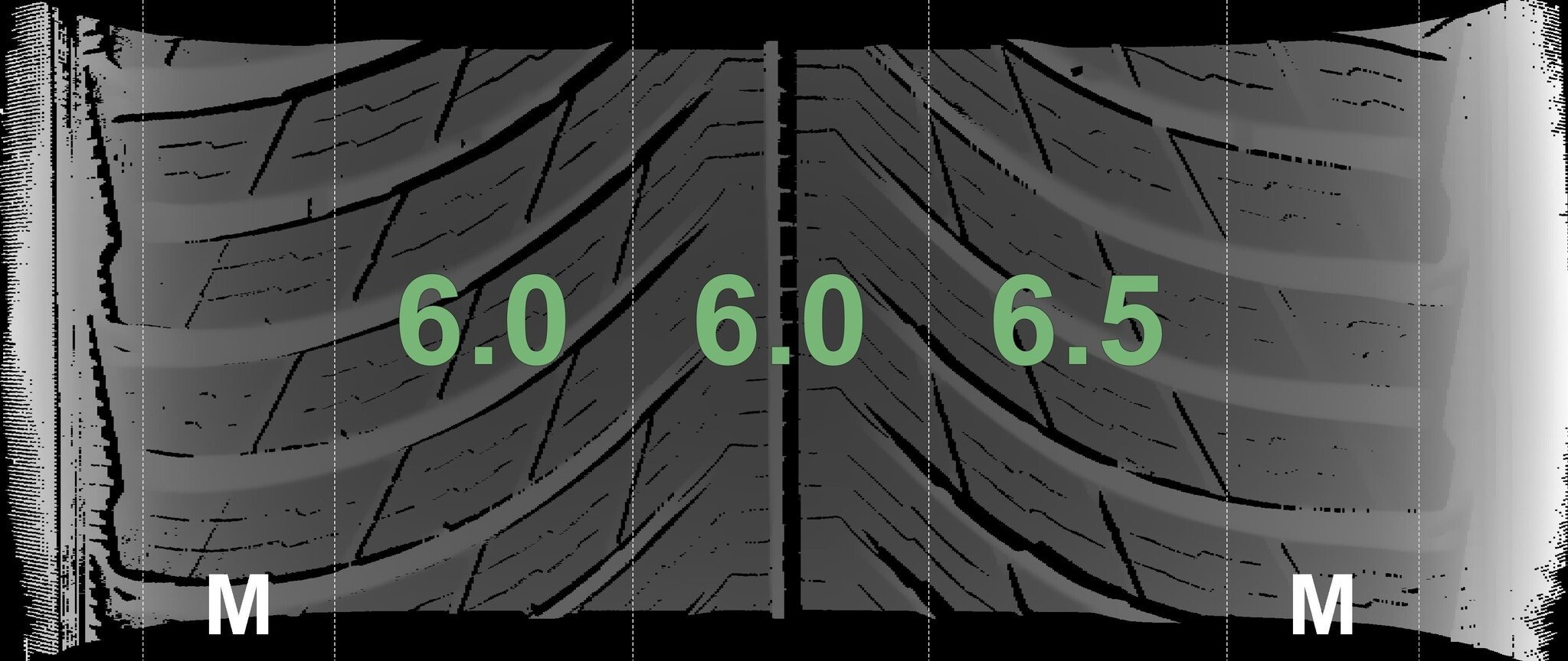 Die gemessenen Profiltiefen und Details zu den Felgen sind oben abgebildet.