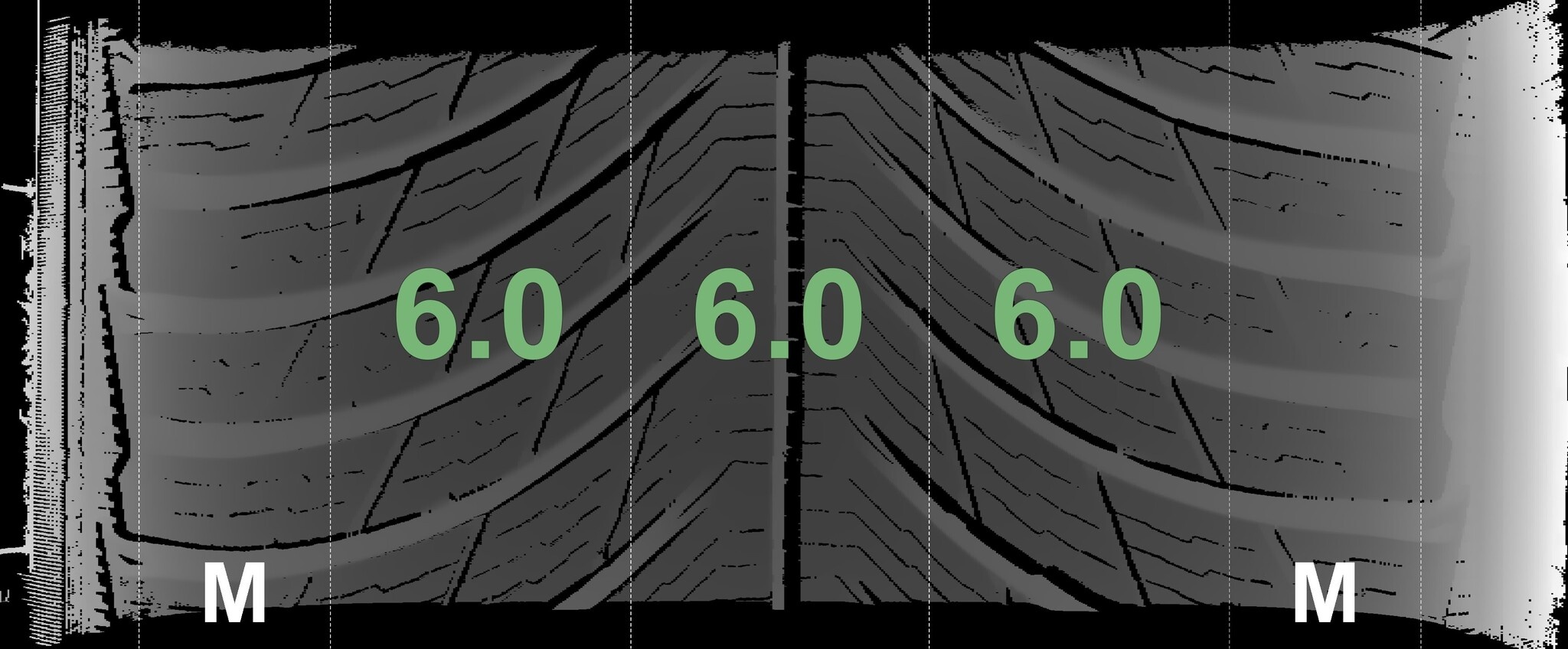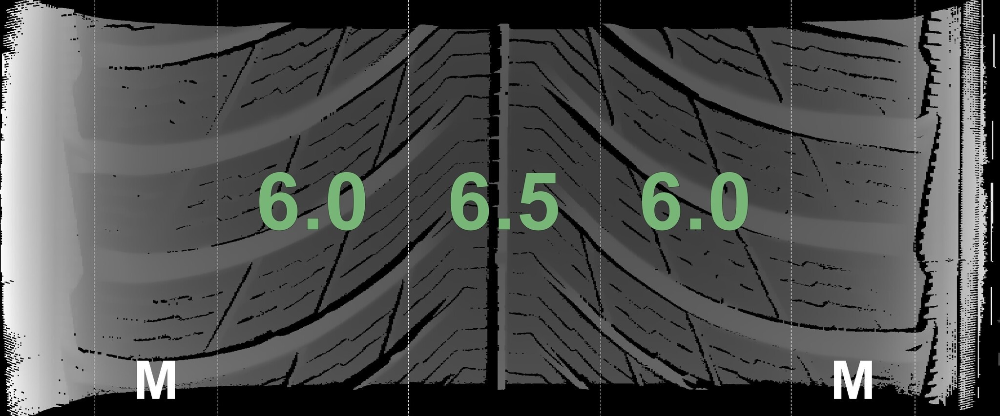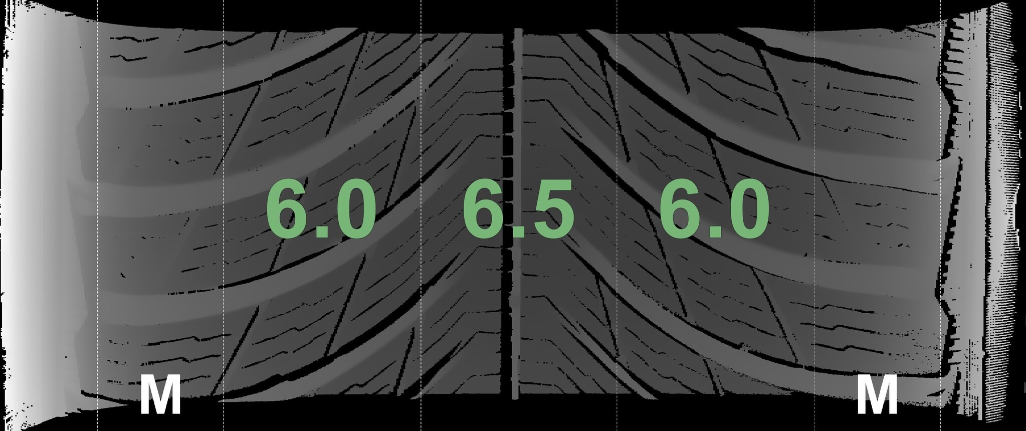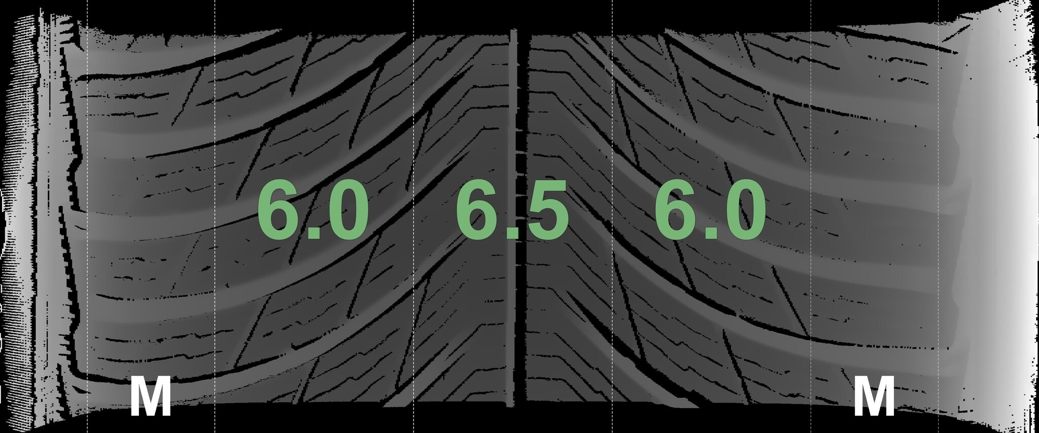 Die gemessenen Profiltiefen und Details zu den Felgen sind oben abgebildet.