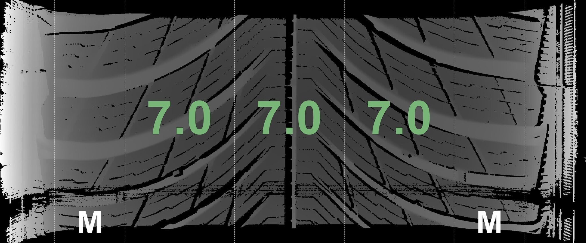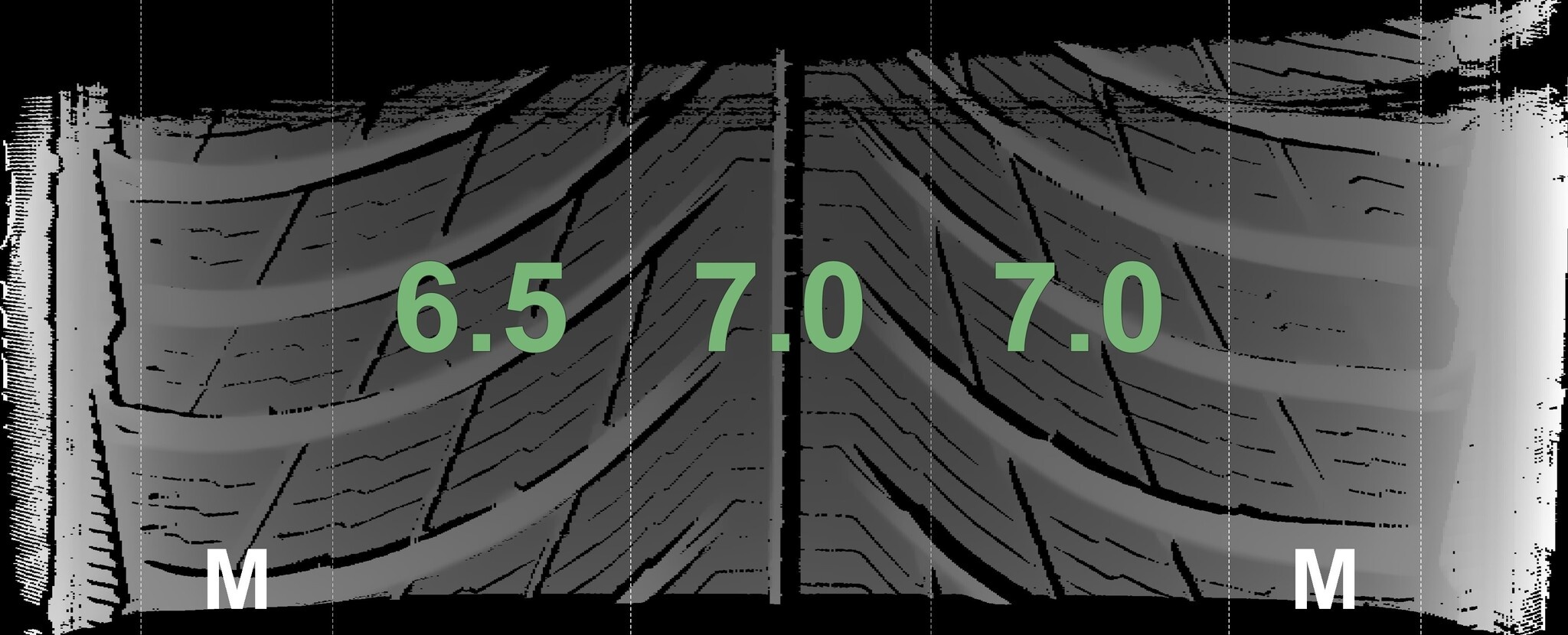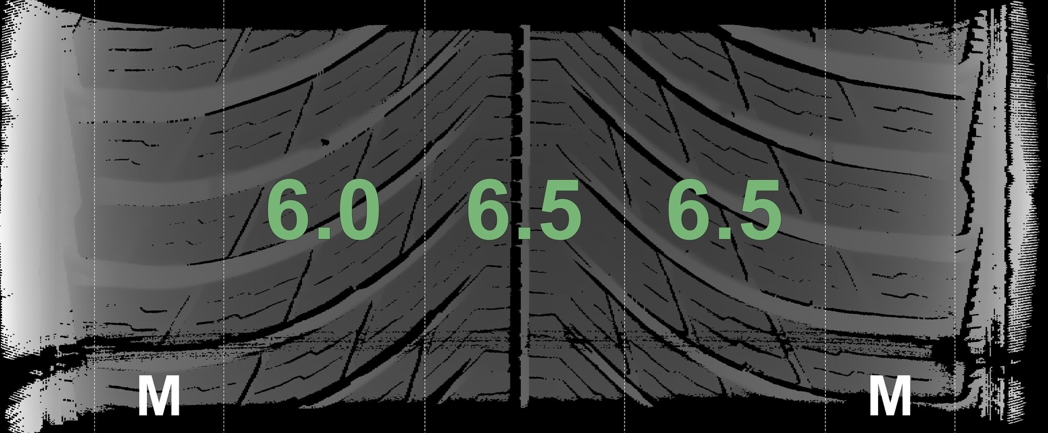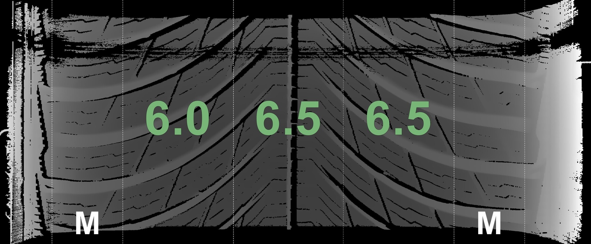 Die gemessenen Profiltiefen und Details zu den Felgen sind oben abgebildet.
