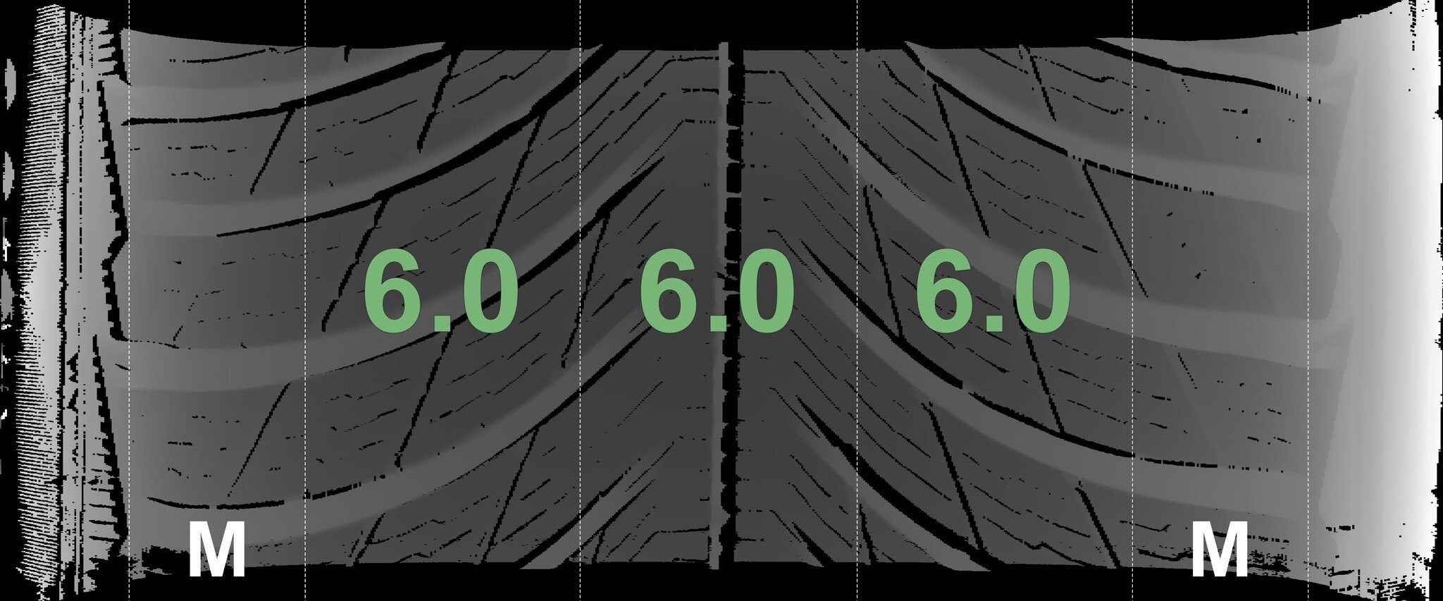 Die gemessenen Profiltiefen und die Details der Felgen sind hierboven weergegeven.